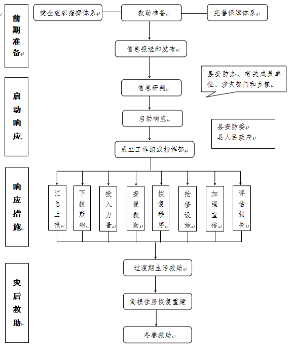 一是健全响应组织机制。结合本县实际,进一步厘清并压实各部门在灾害救助中的具体职责,形成分工明确、协同配合的工作格局。