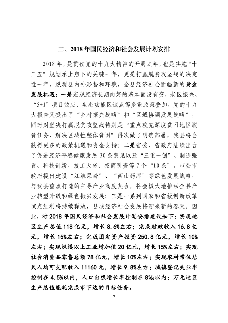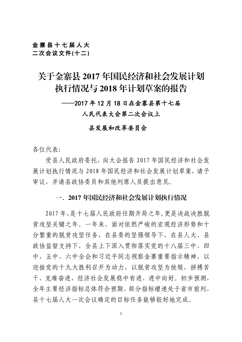 关于金寨县2017年国民经济和社会发展计划执行情况与2018年计划草案的报告