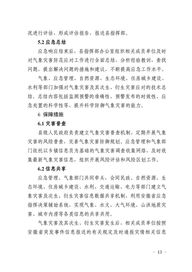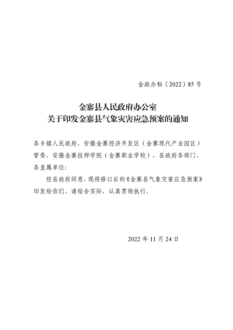 金寨县人民政府办公室关于印发金寨县气象灾害应急预案的通知