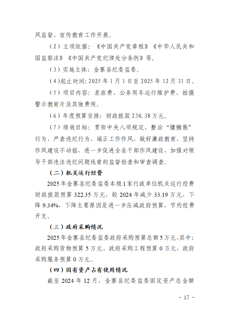 金寨县纪委监委2025年部门预算公开