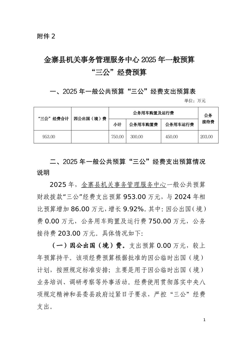 金寨县机关事务管理服务中心2025年一般公共预算“三公”经费预算