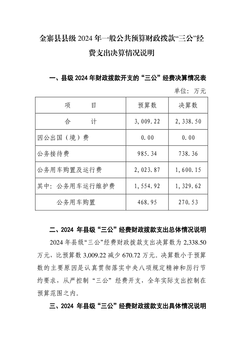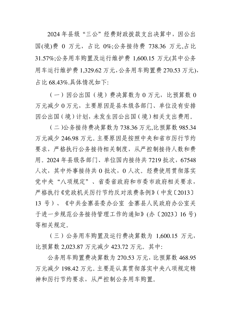 金寨县县级2024年一般公共预算财政拨款“三公”经费支出决算情况说明