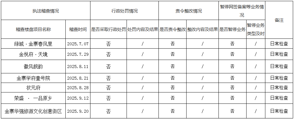 金寨县房地产房地产管理行政处罚一览表(2025年第三季度)