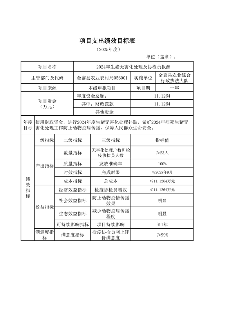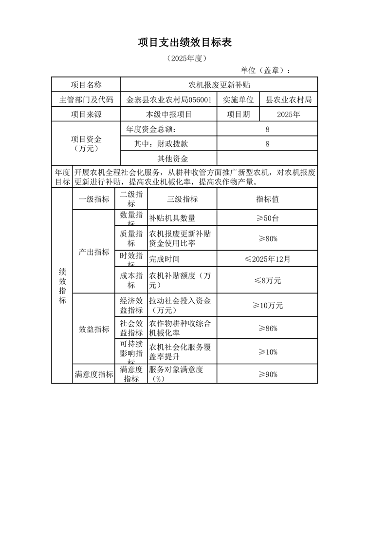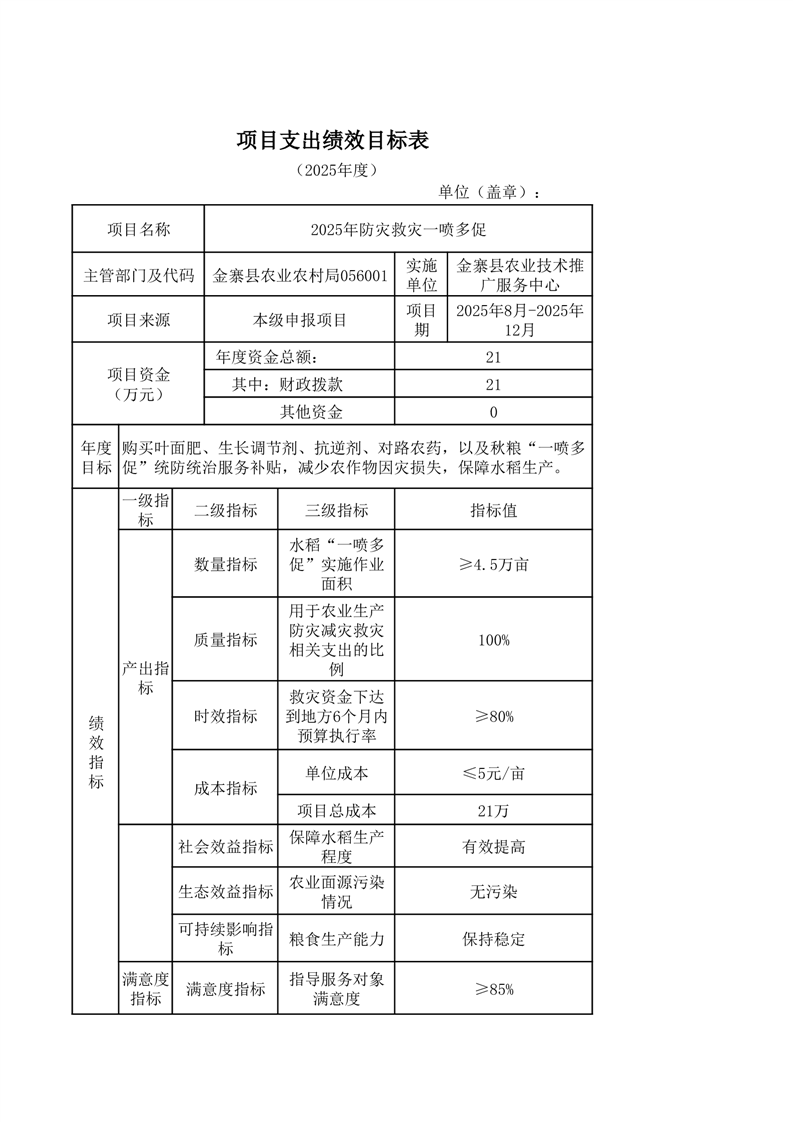 金寨县农业农村局2025年第三季度追加项目绩效目标表