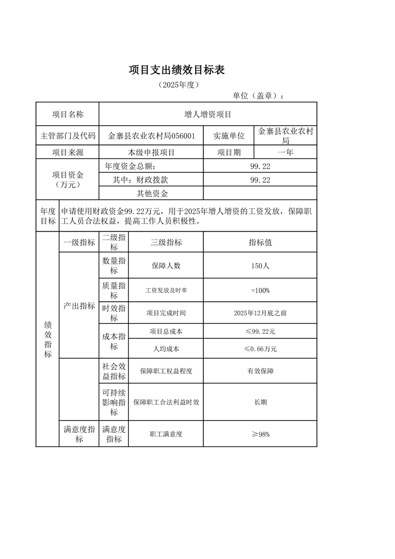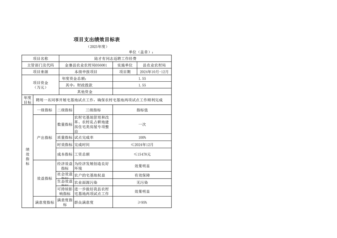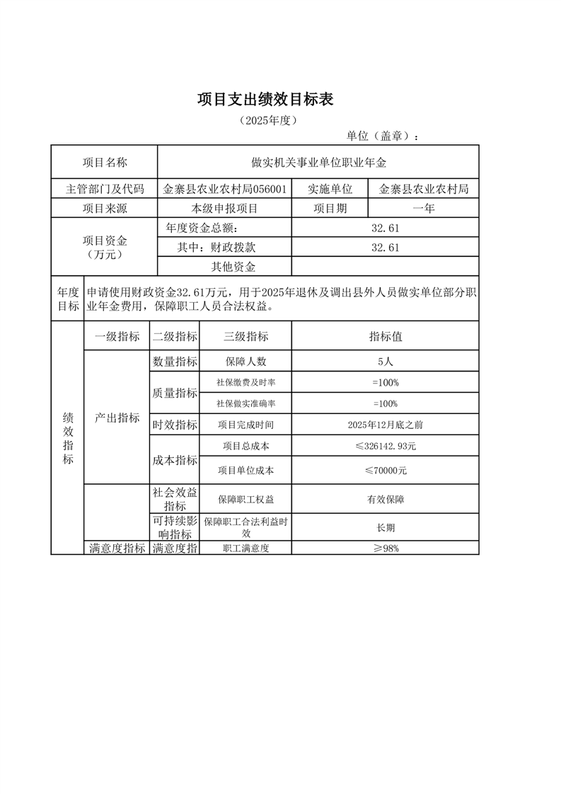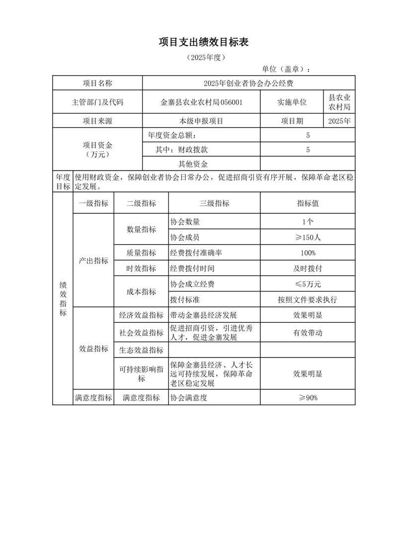 金寨县农业农村局2025年第三季度追加项目绩效目标表