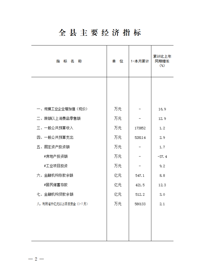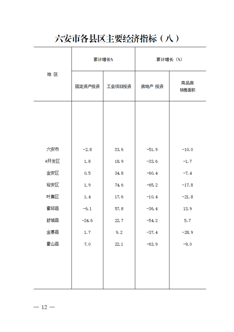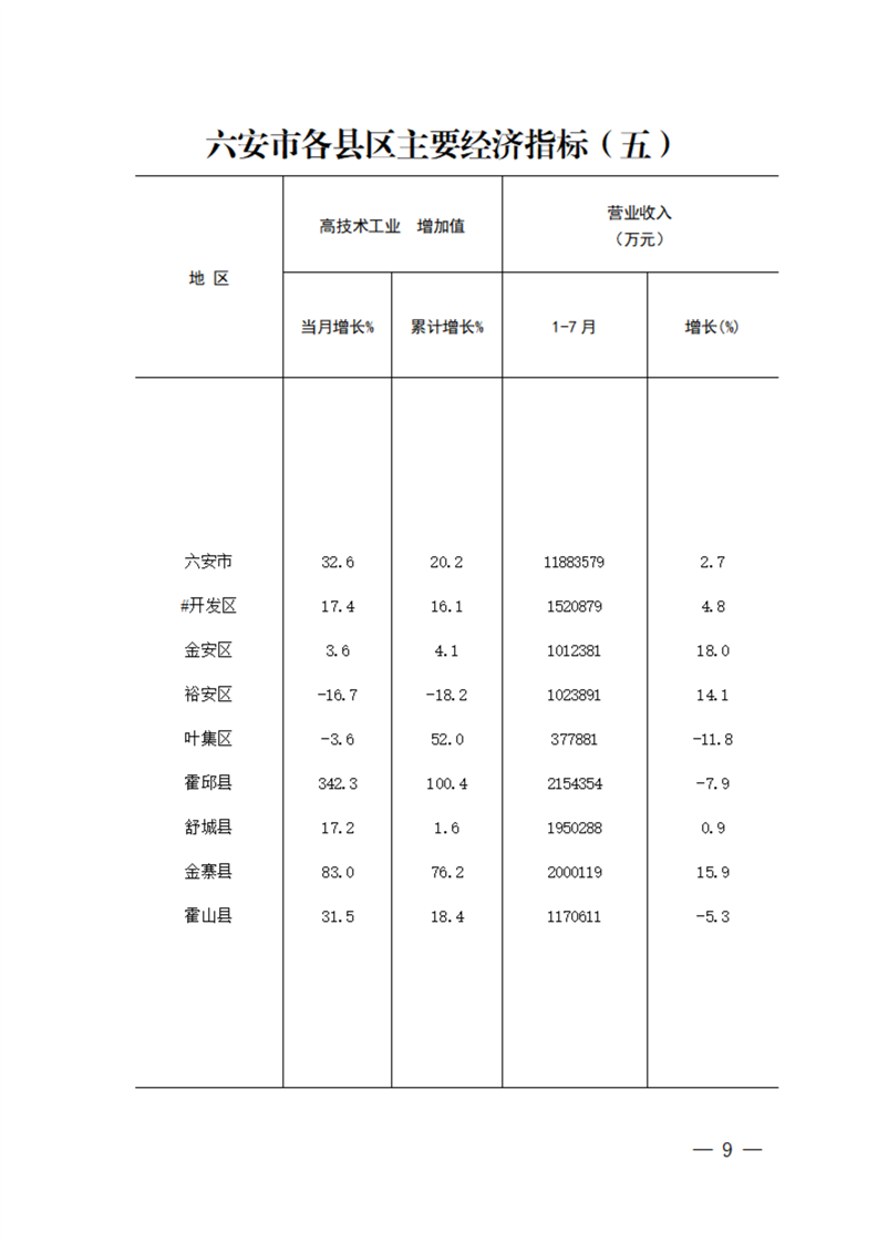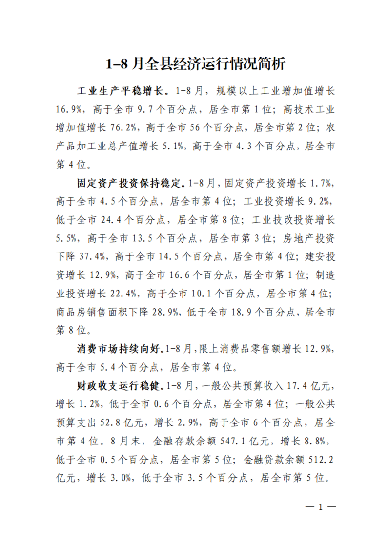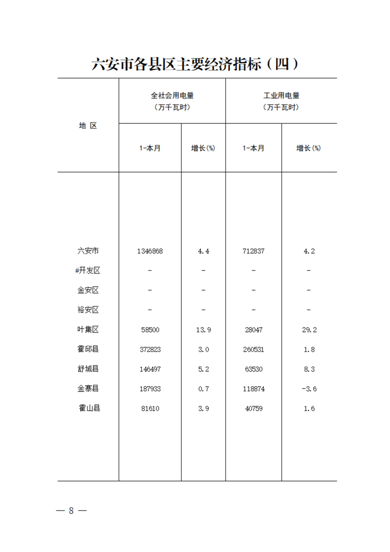 金寨县2025年1-8月月度统计资料