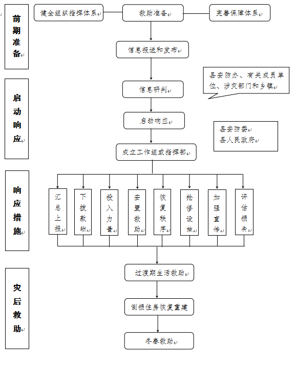 4.县委社工部:负责统筹协调有关志愿服务力量参与灾害救助工作。