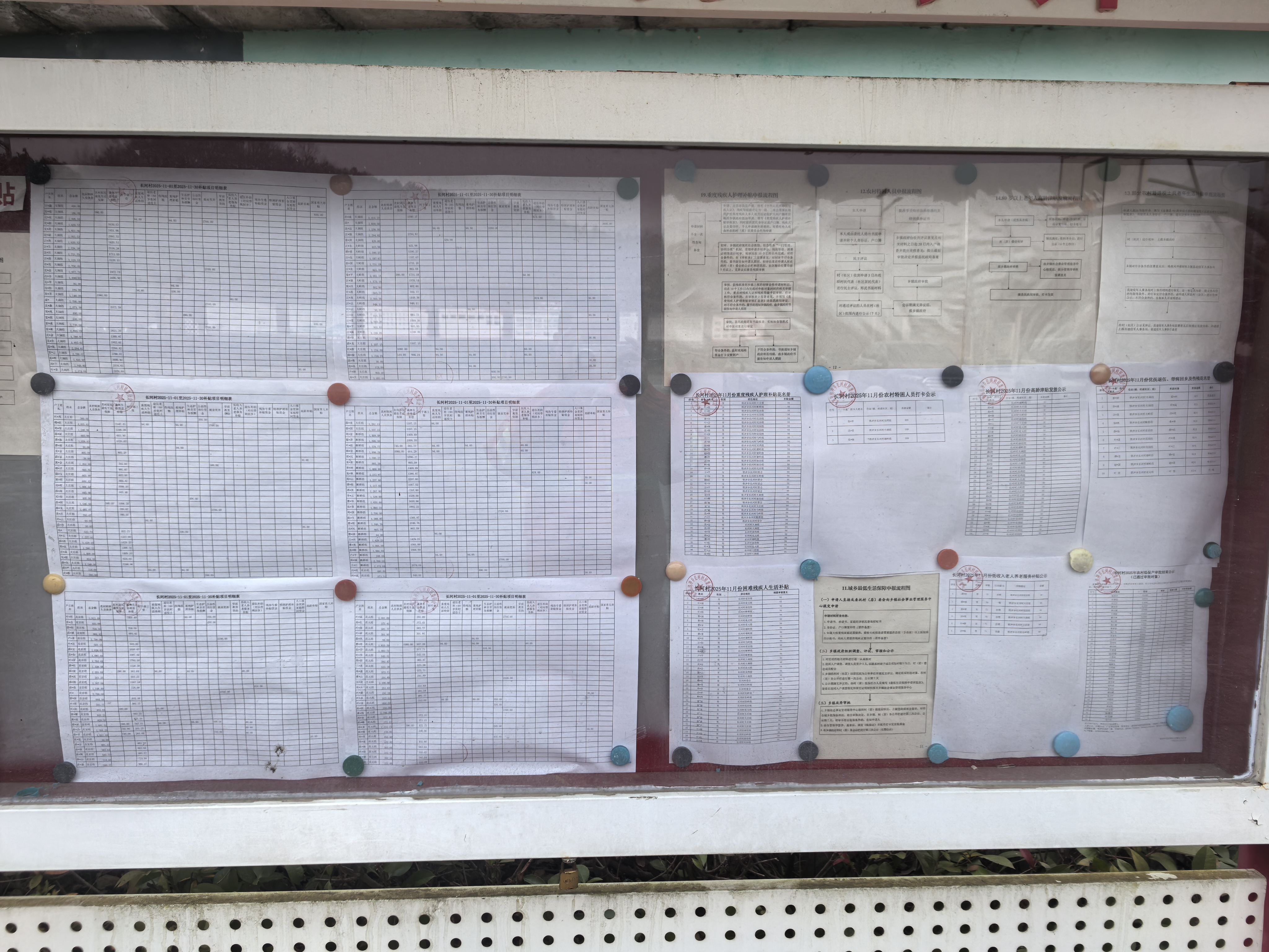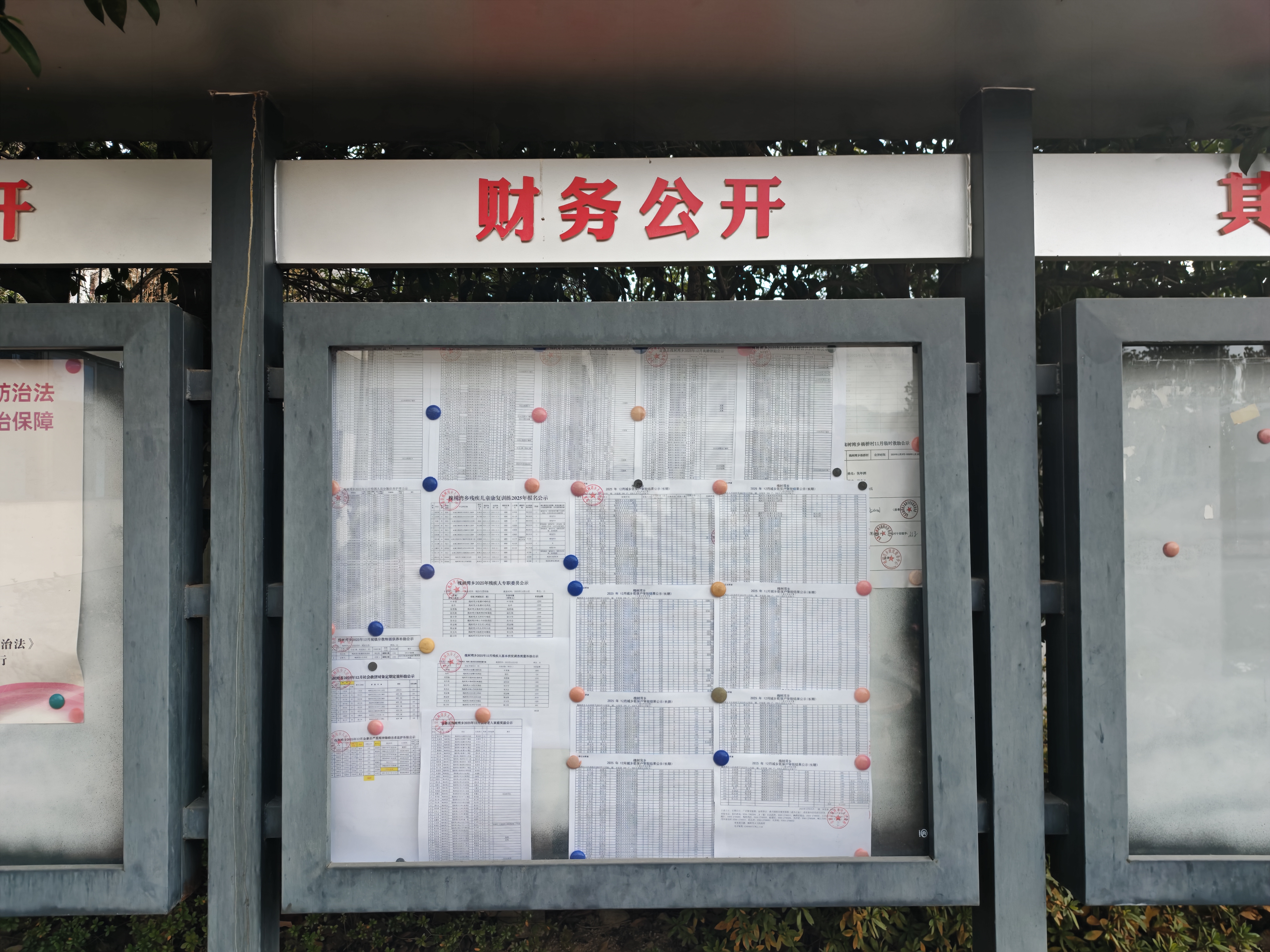 2025年四季度,县政府办公室查看了梅山镇、槐树湾乡、铁冲乡、果子园乡、关庙乡以及全军乡6个乡镇的村务公开栏公示情况,各村均按照要求,公开惠民惠农补贴结果,留存资料档案保存完整。部分公示栏公示情况如下: