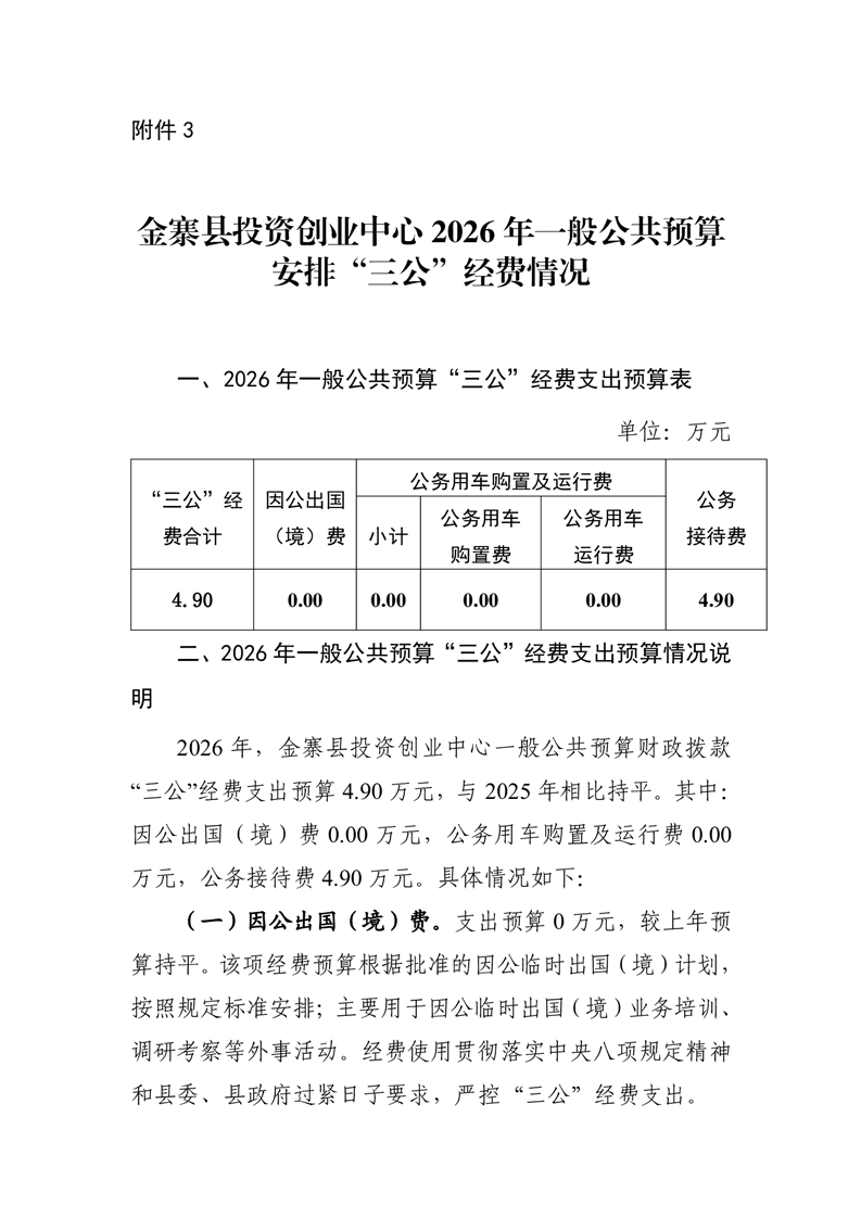 金寨县投资创业中心2026年一般公共预算安排“三公”经费情况公开