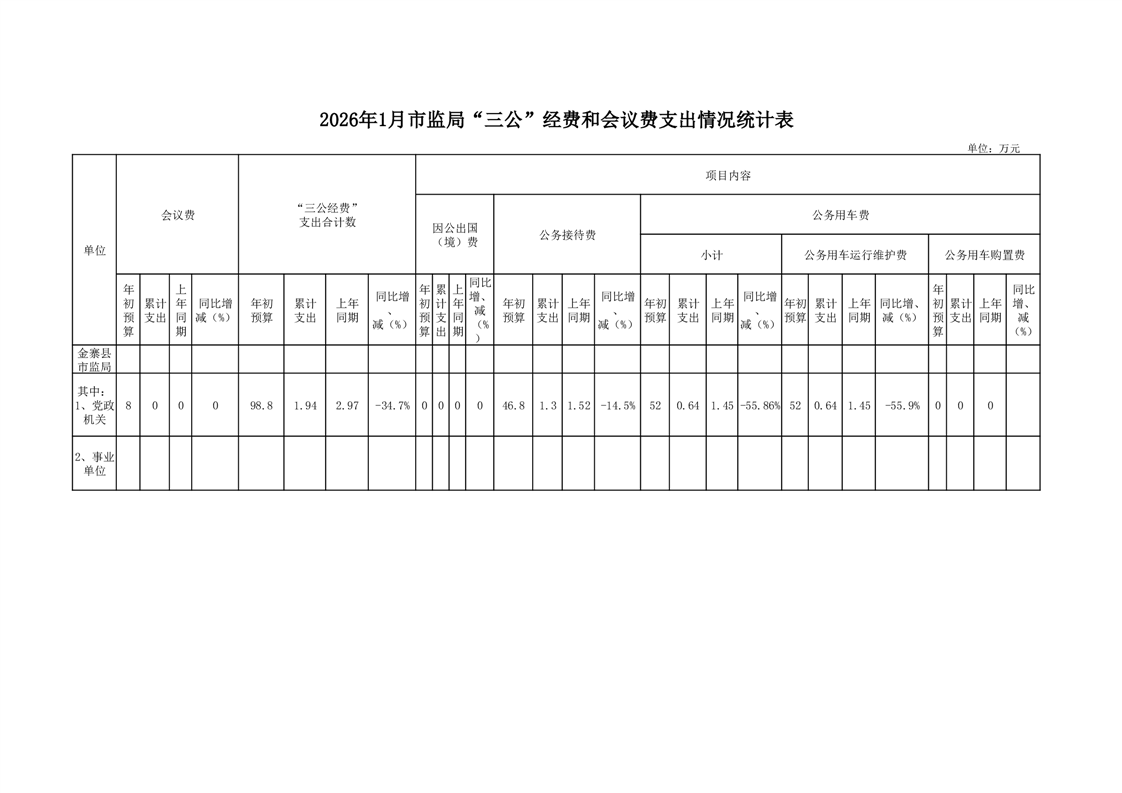 金寨县市场监管局2026年1月“三公”经费和会议费支出情况统计表