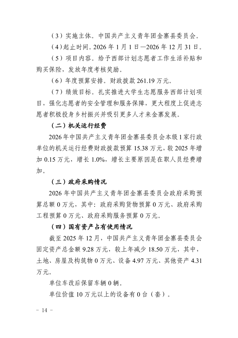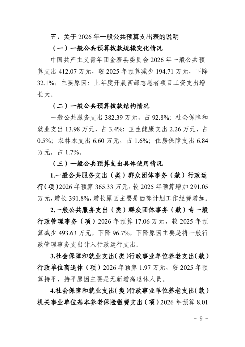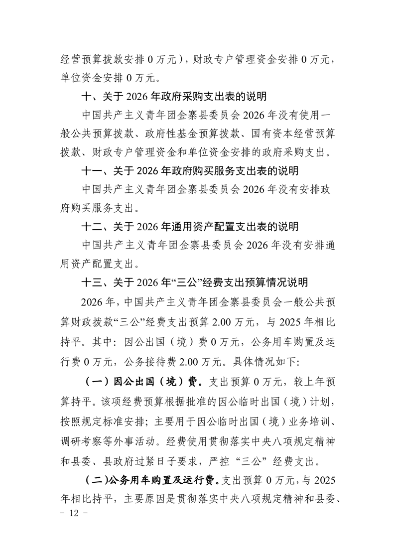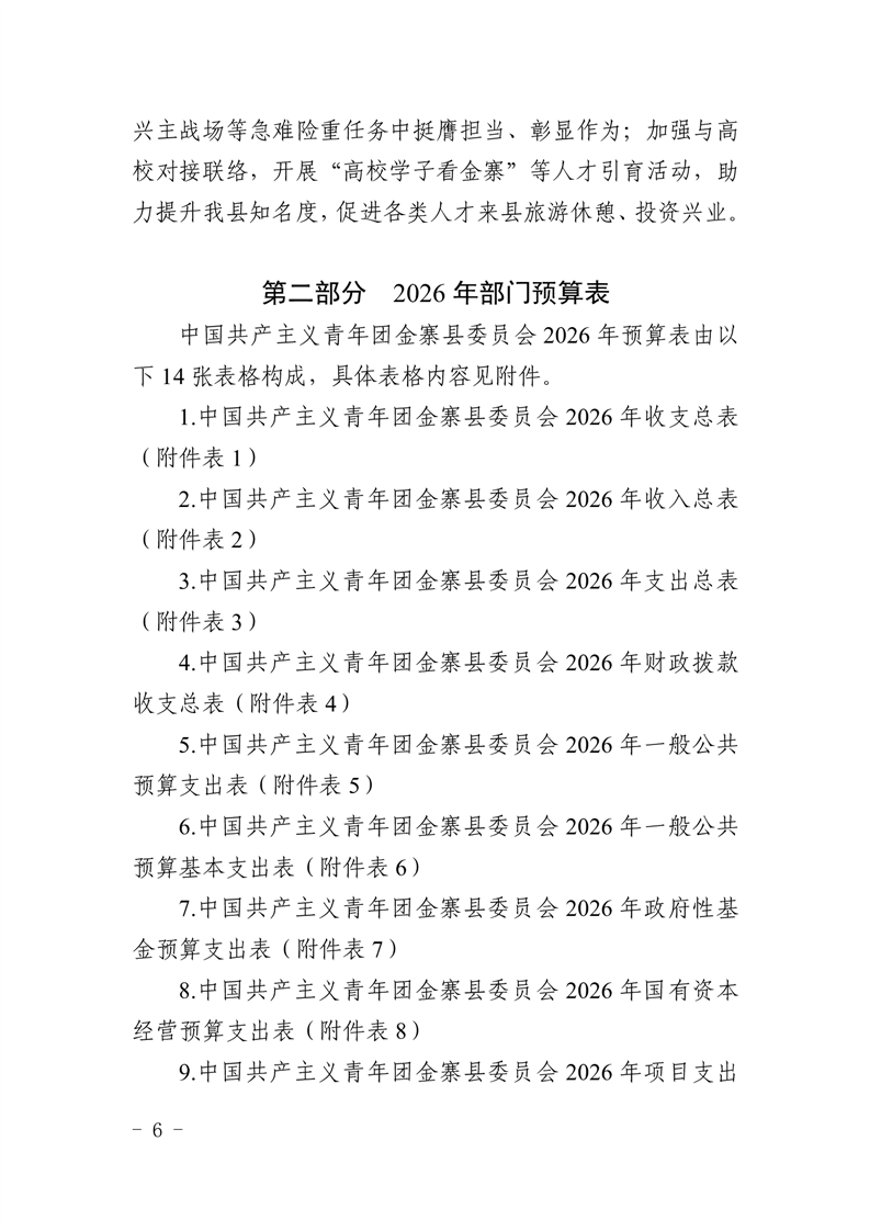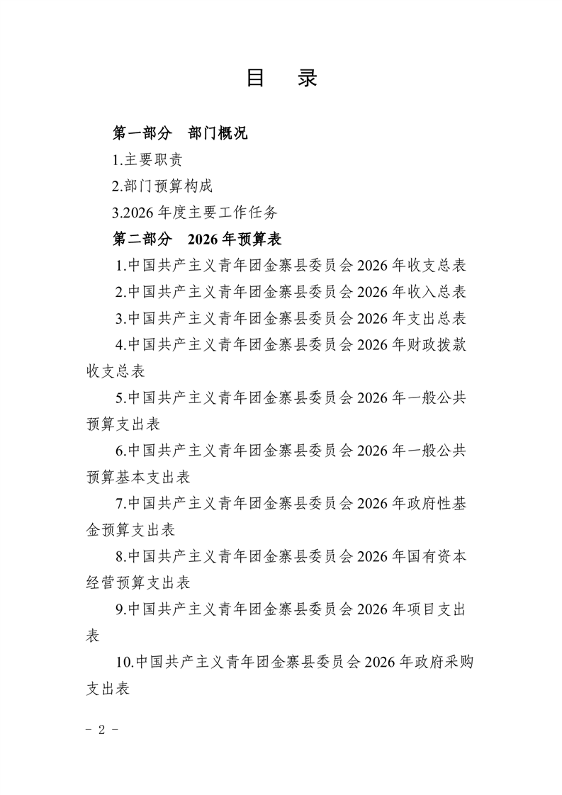 中国共产主义青年团金寨县委员会2026年部门预算公开