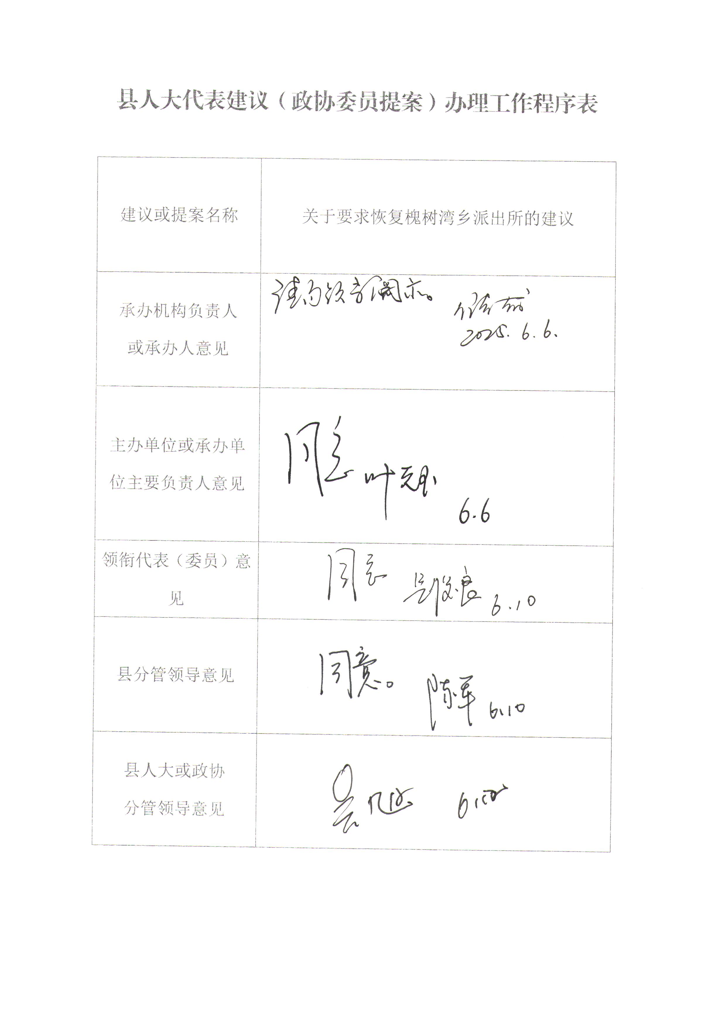 您提出的《关于要求恢复槐树湾乡派出所的建议》收悉,现将办理情况报告如下: