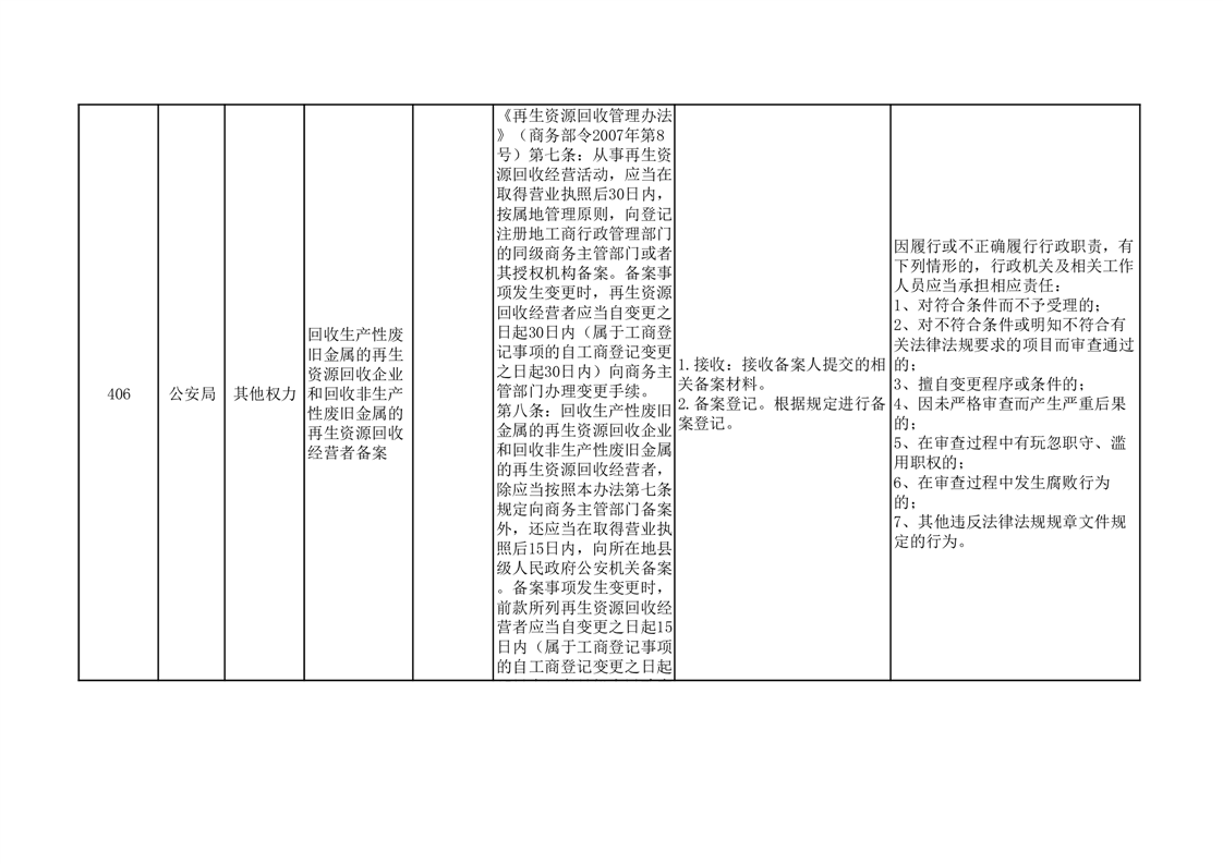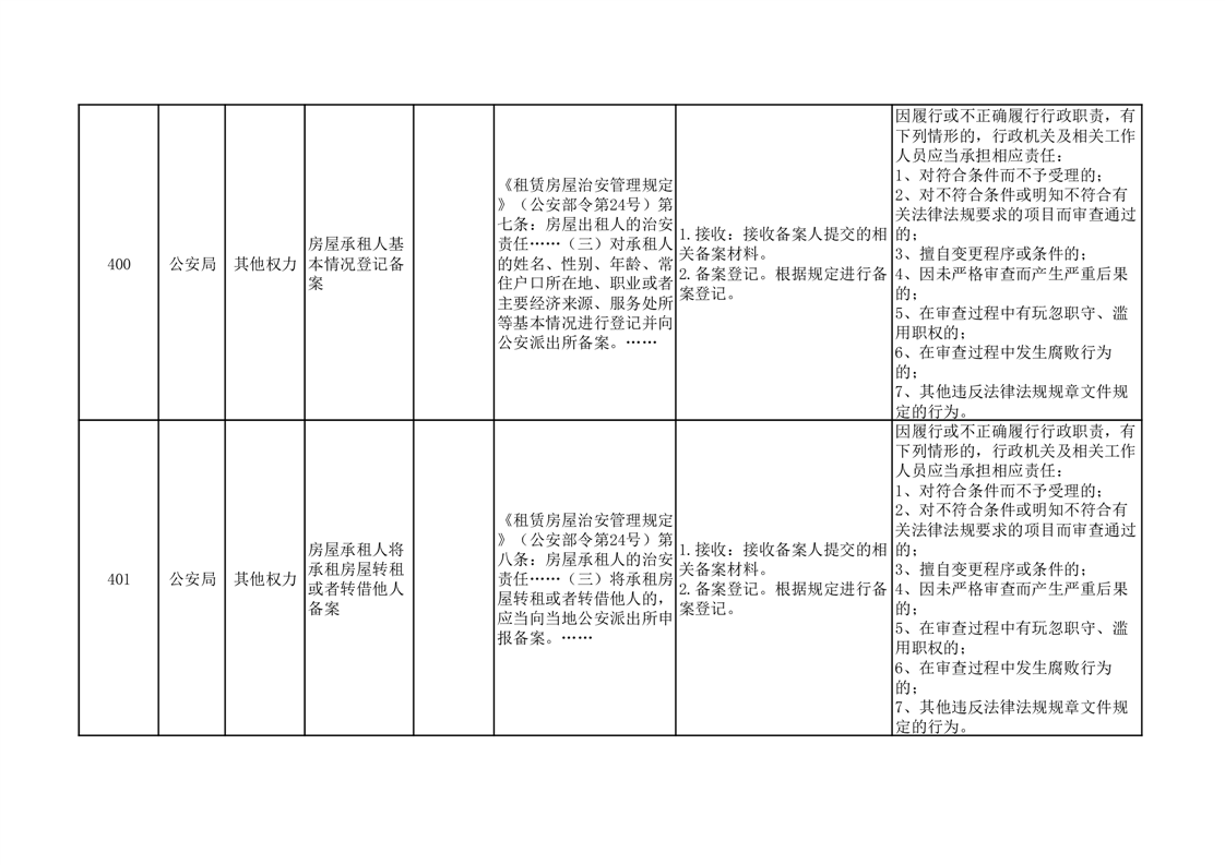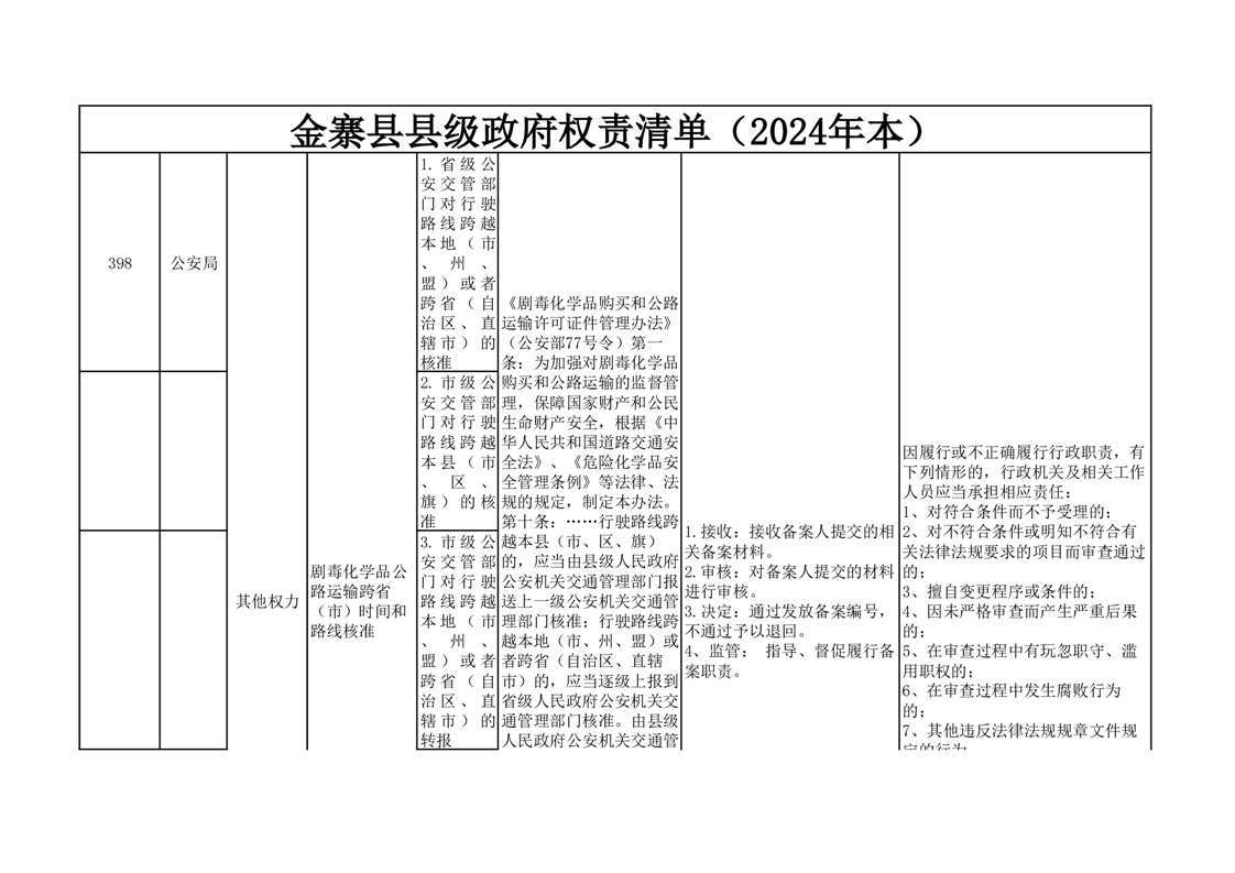 金寨县公安局权责清单分表(其他权力类)(2024年本)