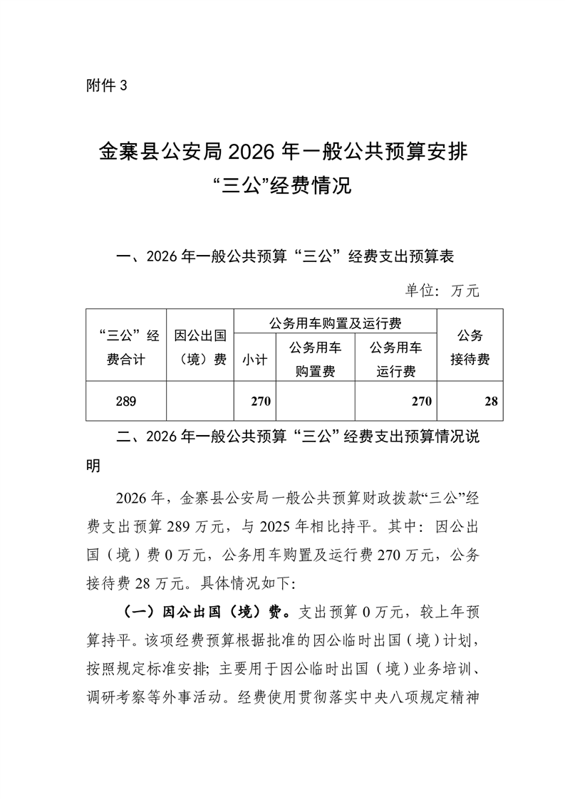 金寨县公安局2026年一般公共预算安排“三公”经费情况公开