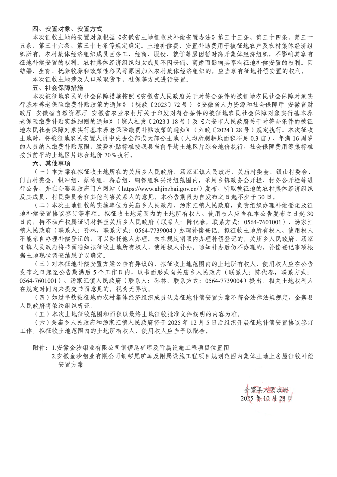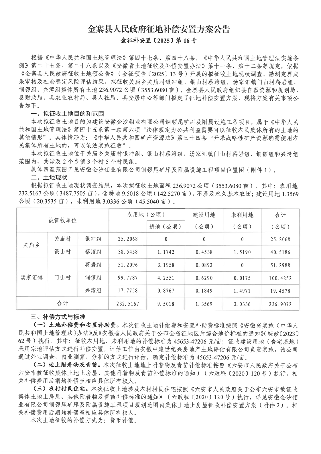 金寨县人民政府征地补偿安置方案公告(金征补安置〔2025〕第16号)
