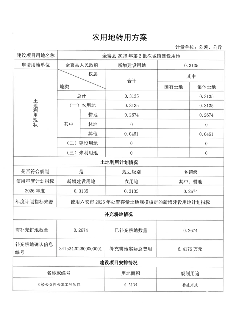 金寨县2026年第2批次城镇建设用地呈报农用地转用方案
