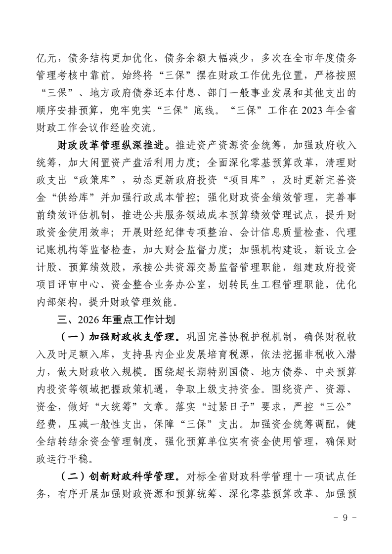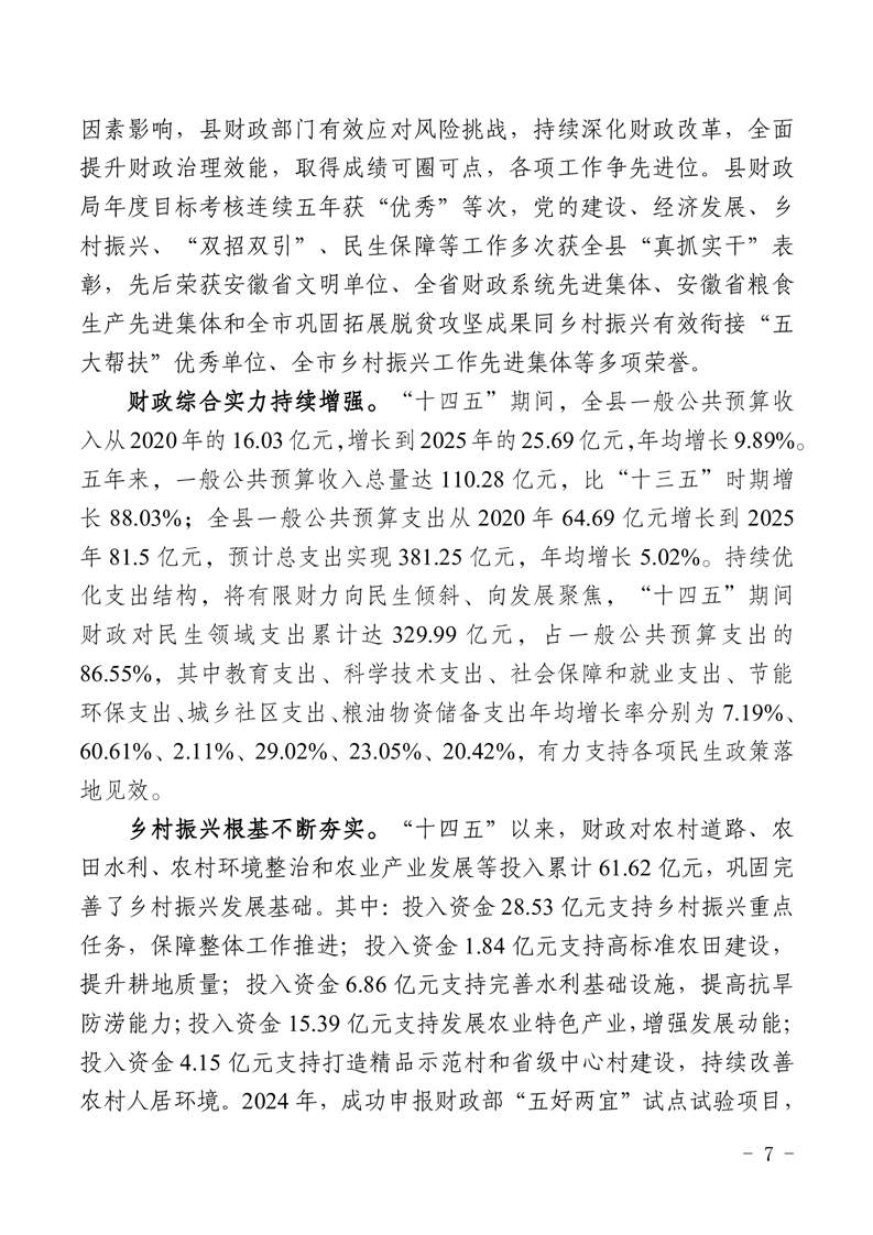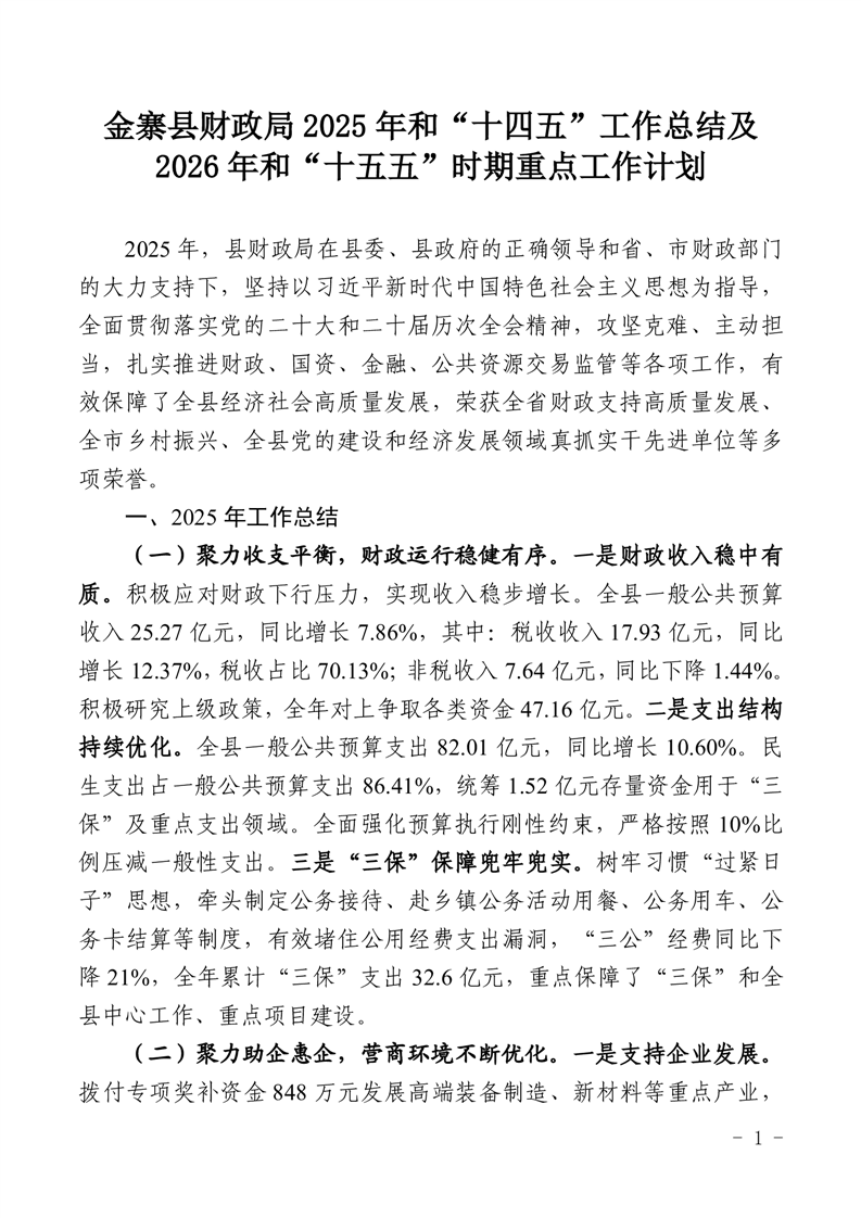 全面工作总结和工作计划:金寨县财政局2025年和“十四五”工作总结及2026年和“十五五”时期重点工作计划