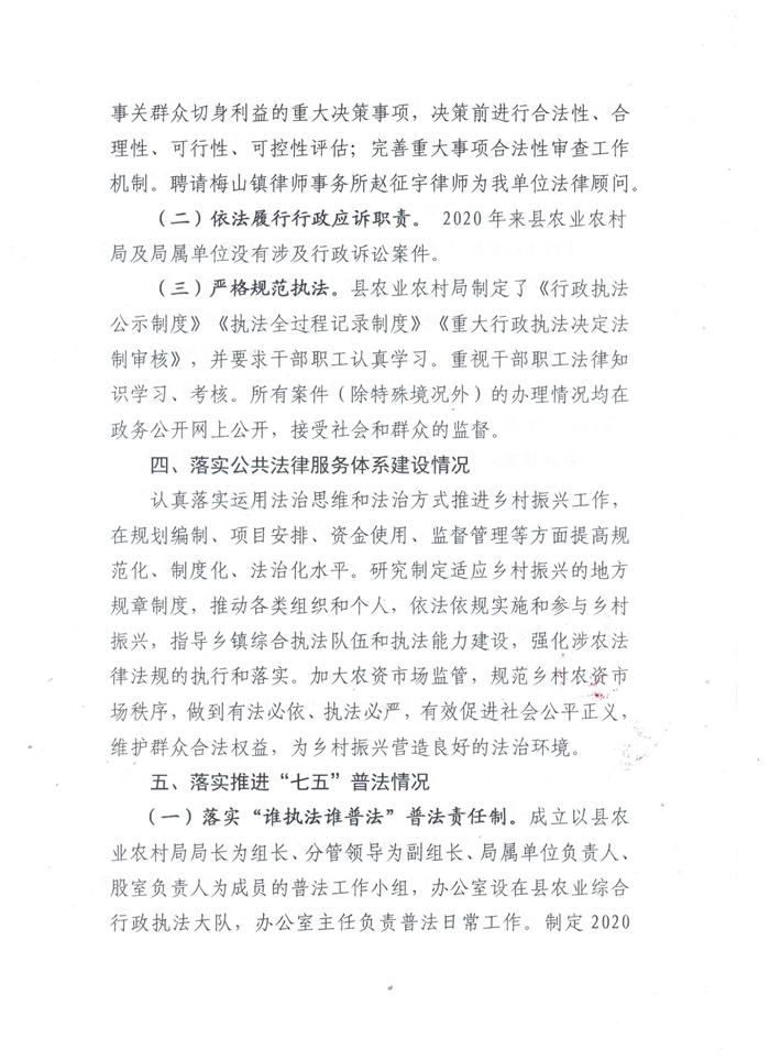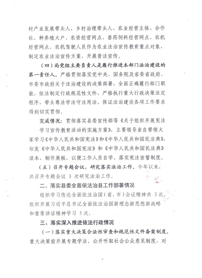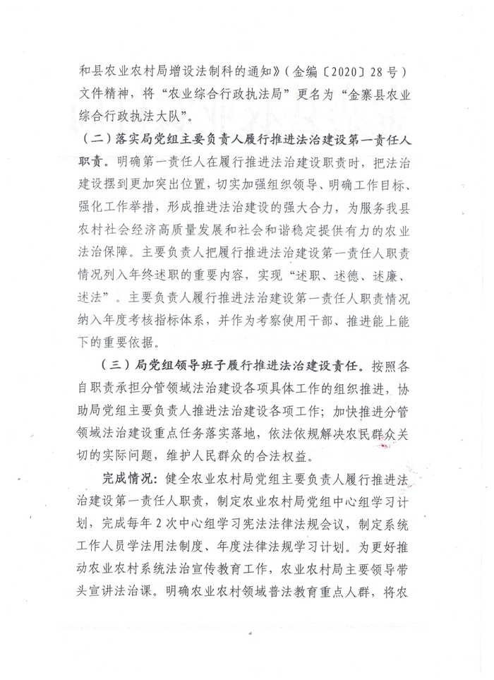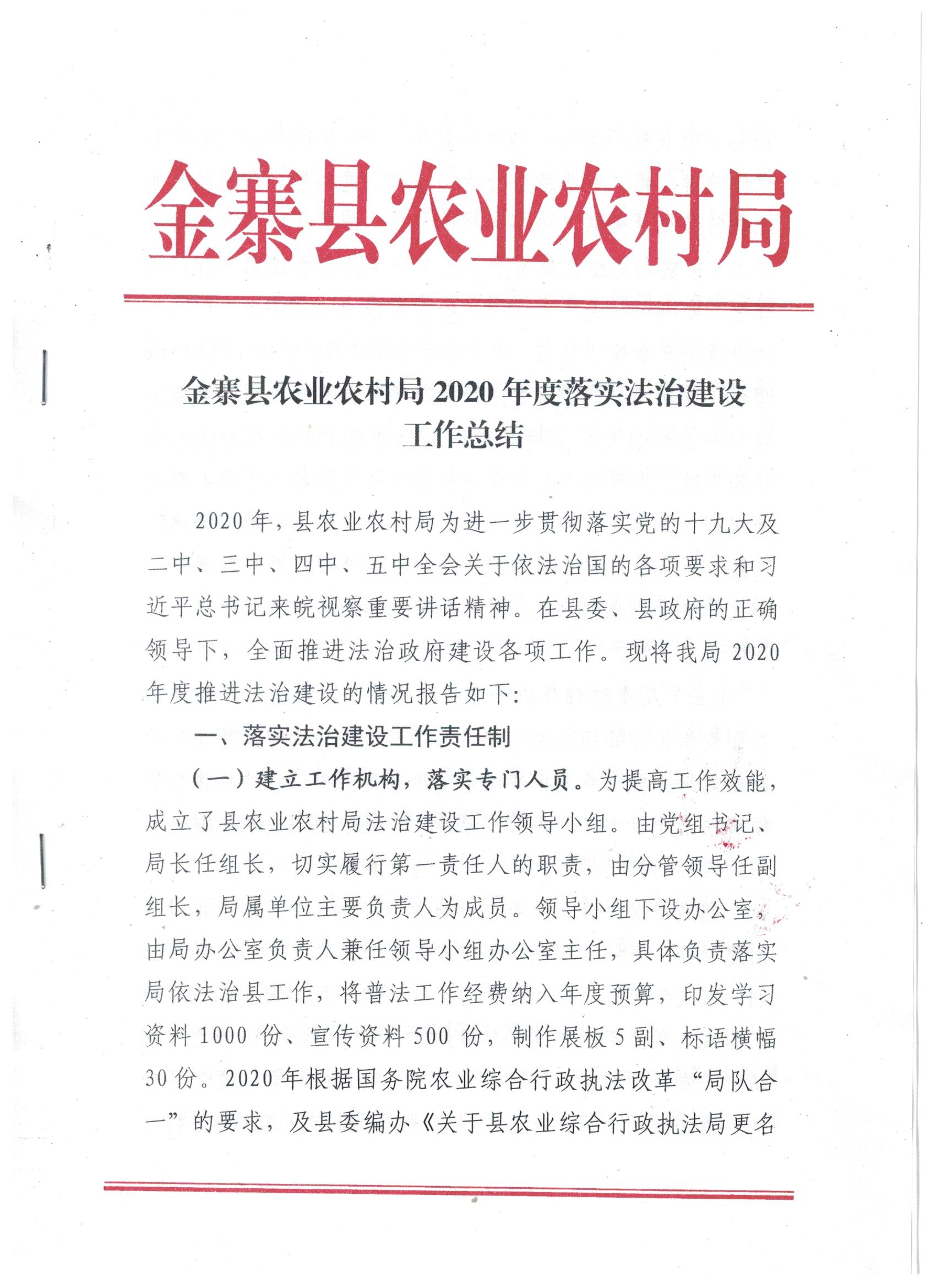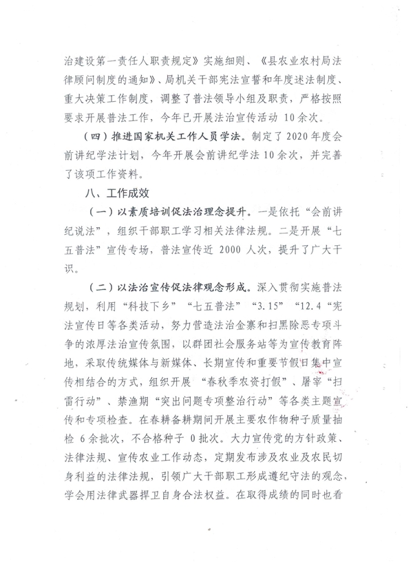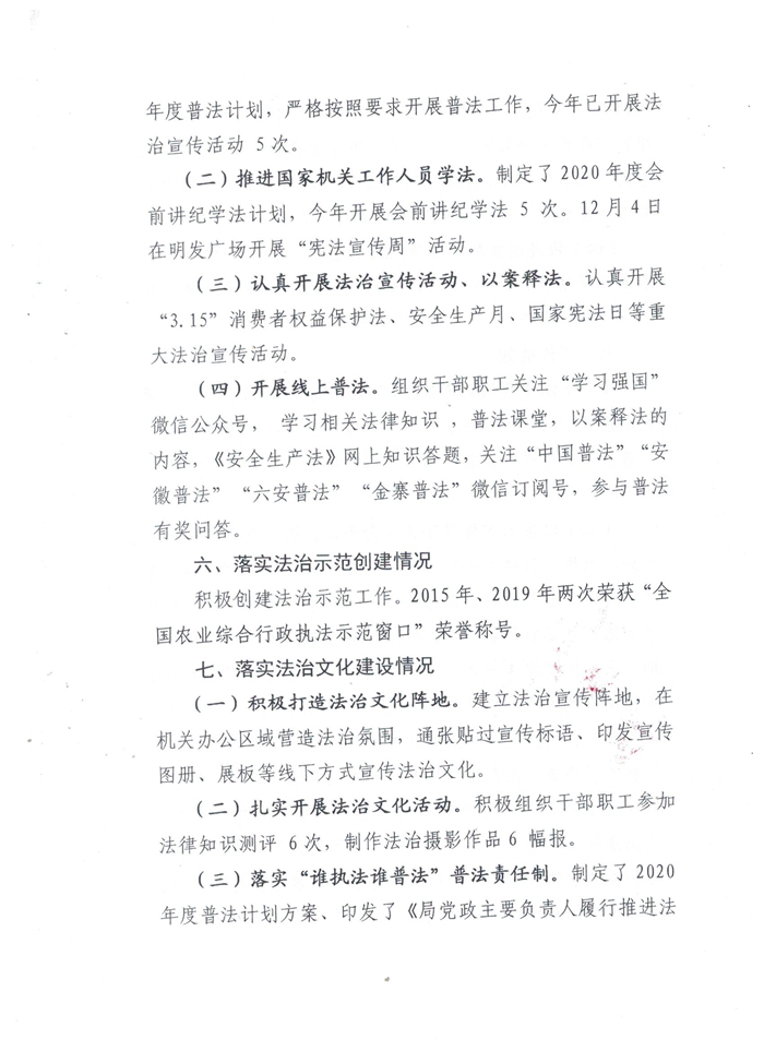 金寨县农业农村局2020年度落实法治建设工作总结