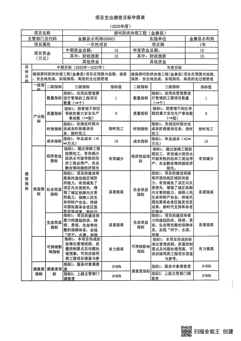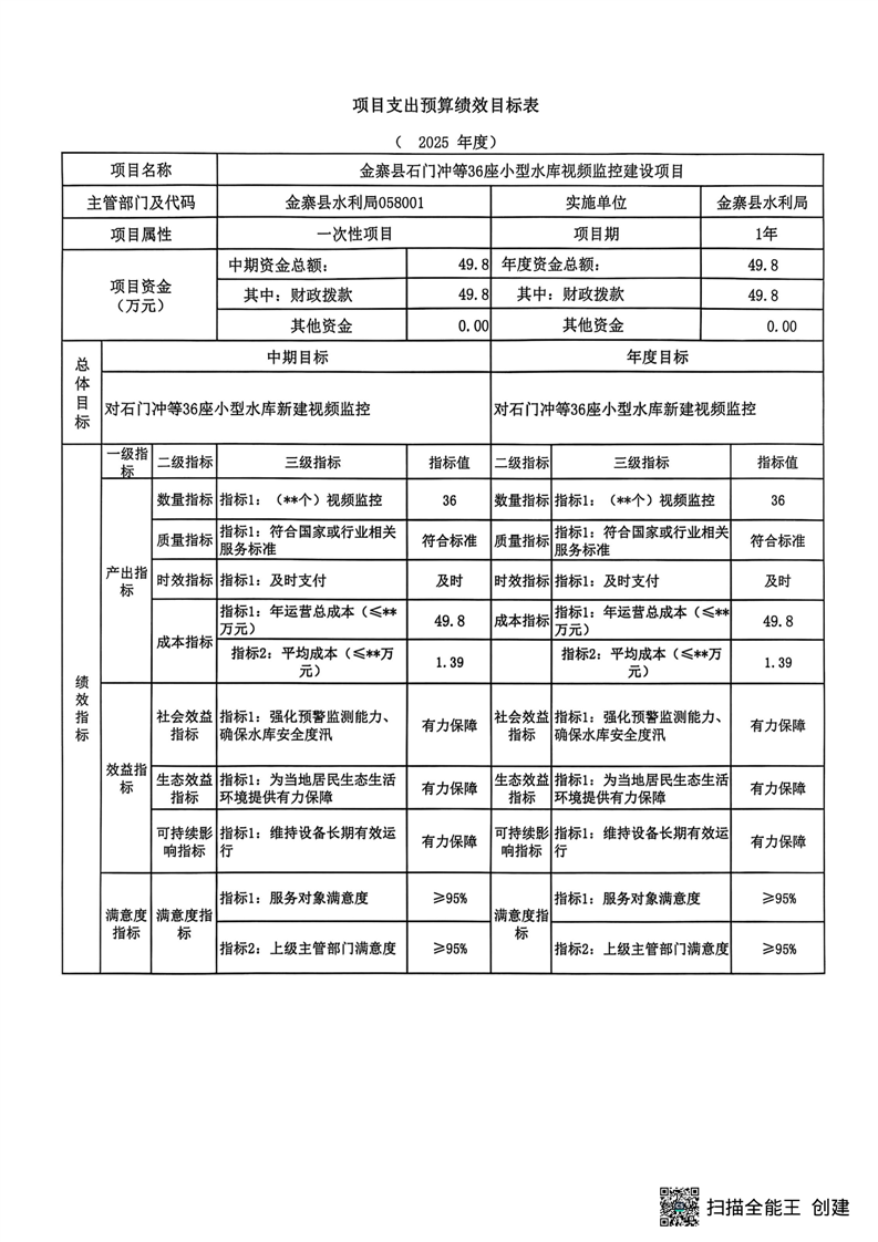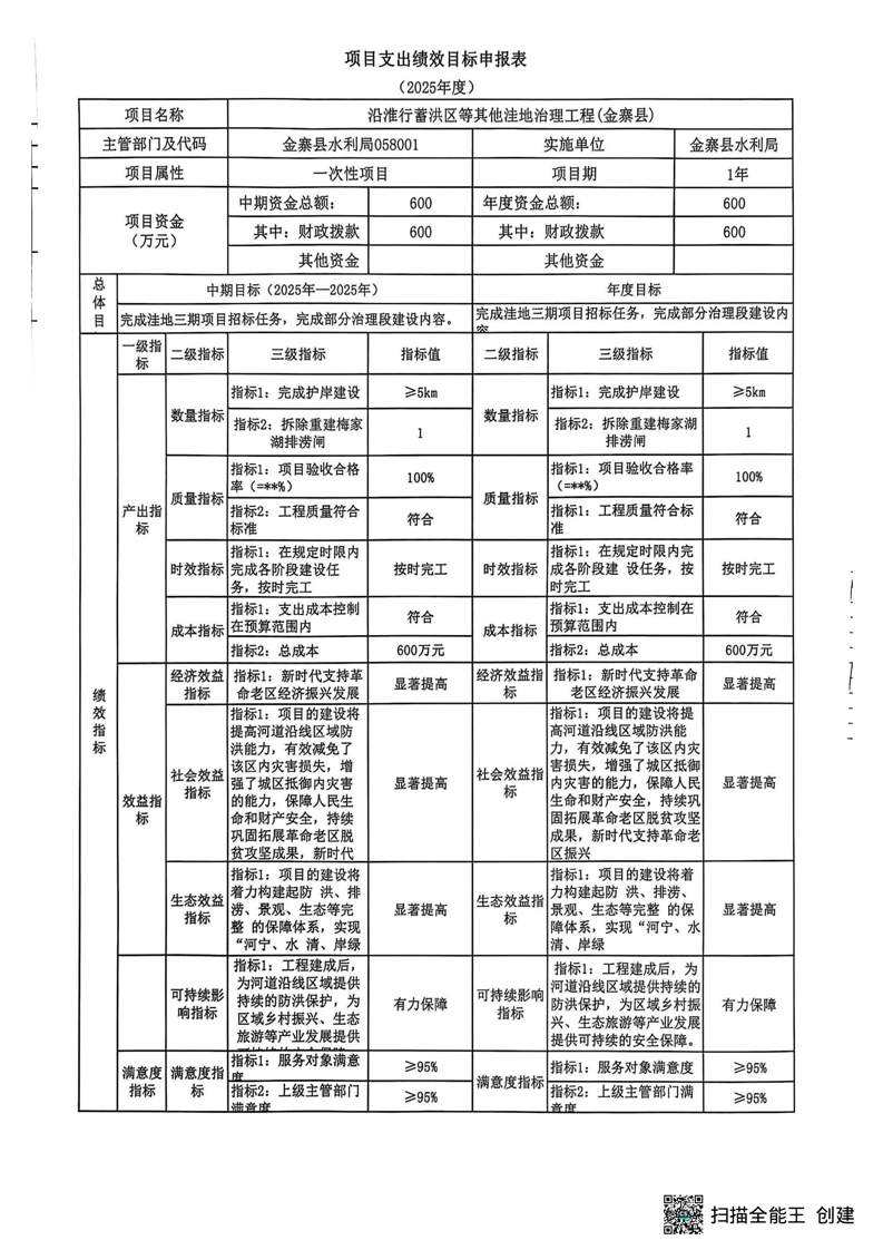 金寨县水利局2025年第四季度追加绩效目标表