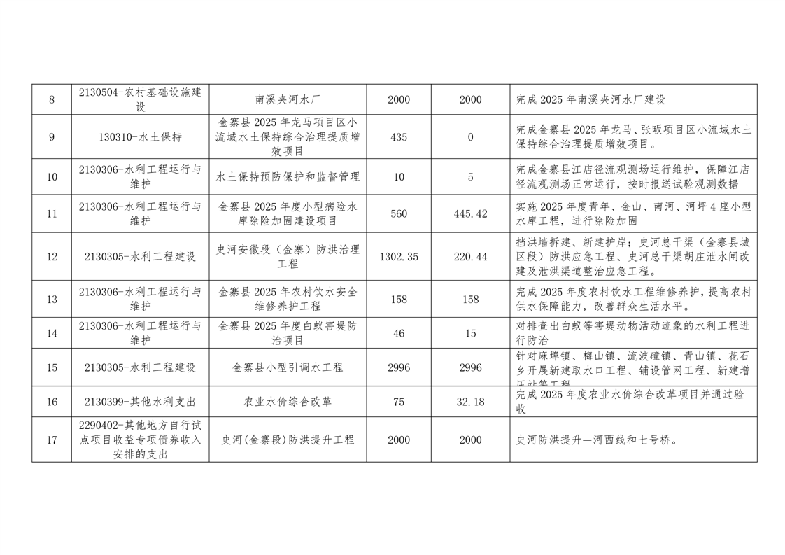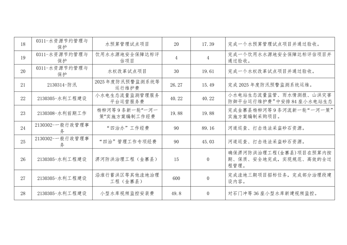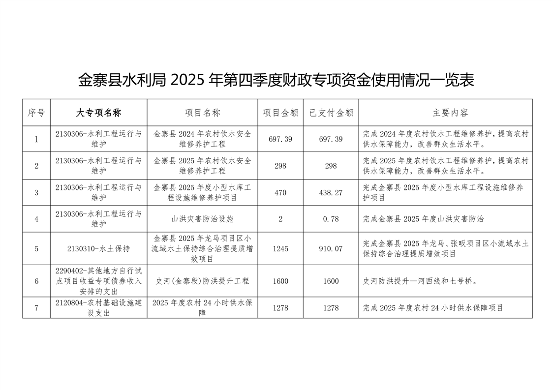 金寨县水利局2025年第四季度财政专项资金使用情况一览表