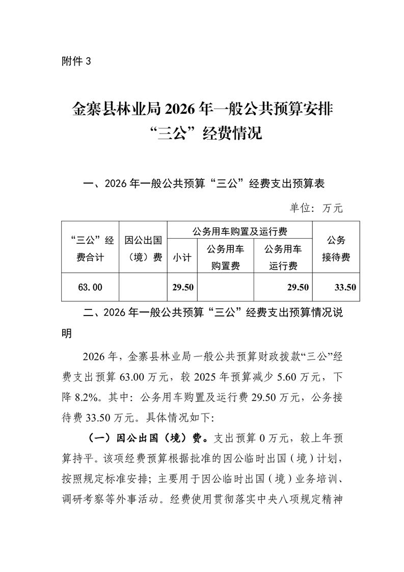 金寨县林业局2026年部门一般公共预算安排“三公”经费情况