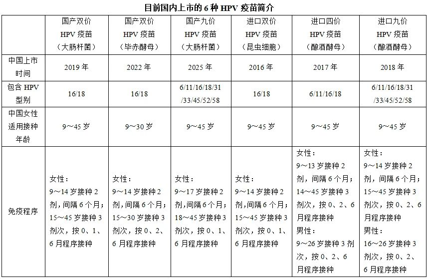 HPV易感染皮肤和黏膜,其中高危型HPV的持续感染是宫颈癌的主要诱因。目前已知的HPV型别有200余种,根据预防病毒种类的不同,HPV疫苗分为二价、四价和九价: