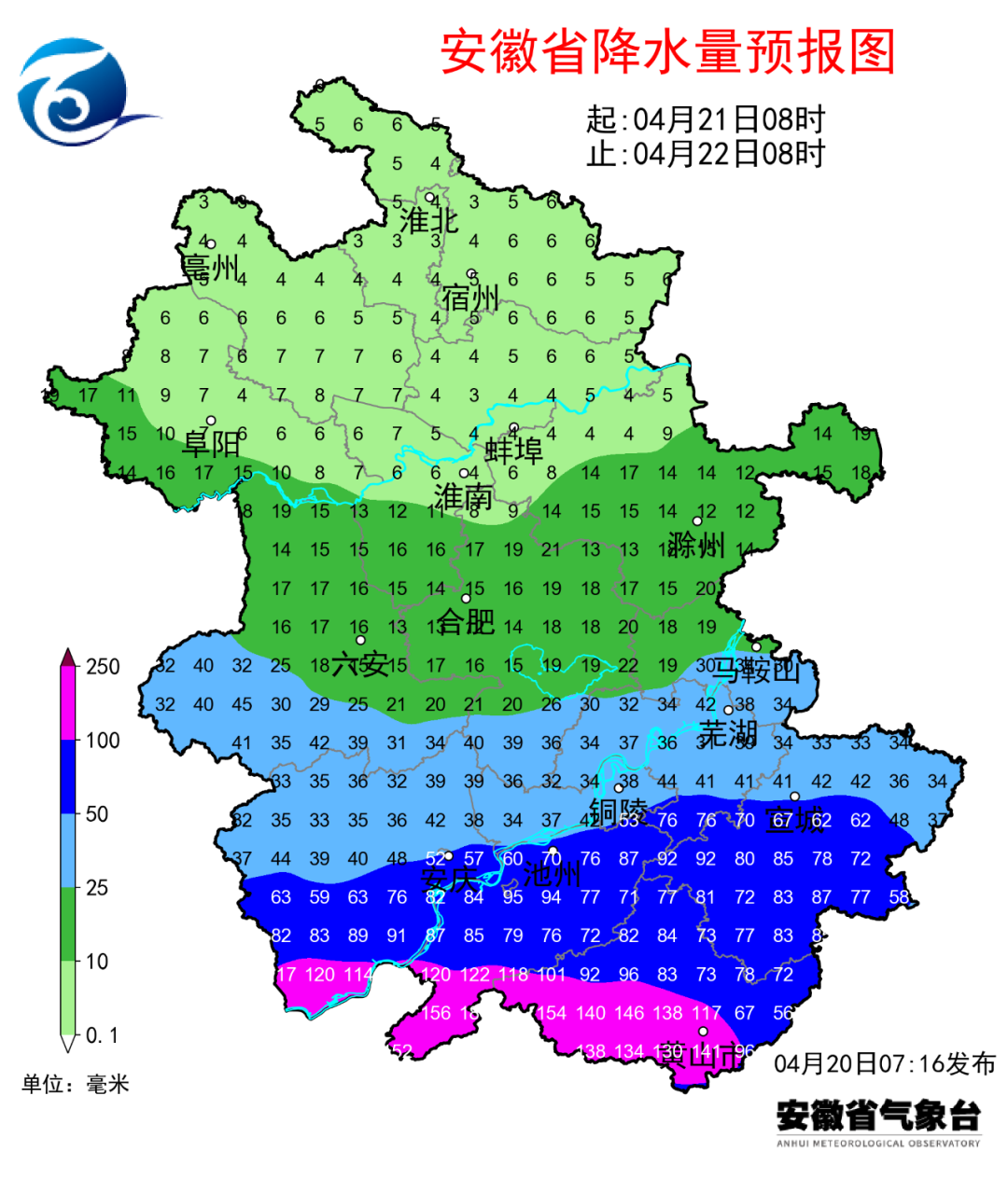 据安徽气象最新预报: 六安、合肥、马鞍山、安庆、池州
