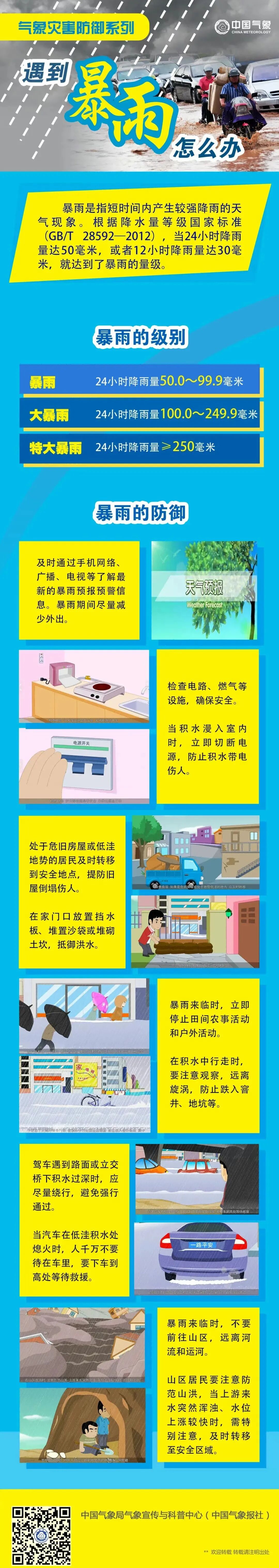 【金寨气象】提示您关注天气:今天我县小到中等雷阵雨,部分地区大雨,最高气温27℃;明后两天阴有阵雨或雷雨,最高气温26~28℃,最低气温22℃左右。降水期间将伴有短时强降水、瞬时大风等对流性天气,请注意防范。