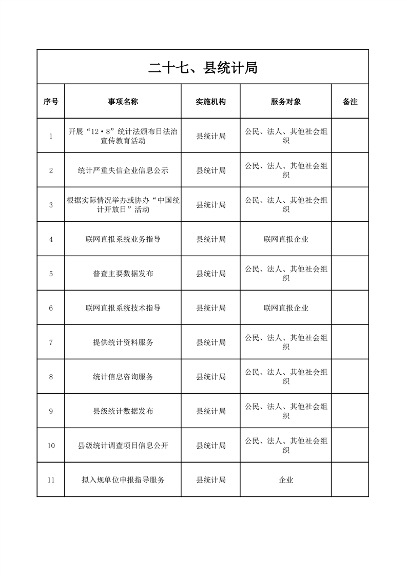 金寨县统计局公共服务清单(2025年版)