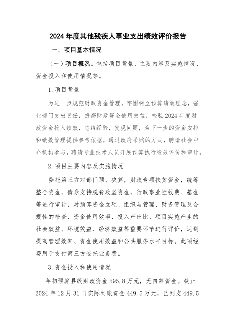 金寨县残联2024年度其他残疾人事业支出绩效评价报告