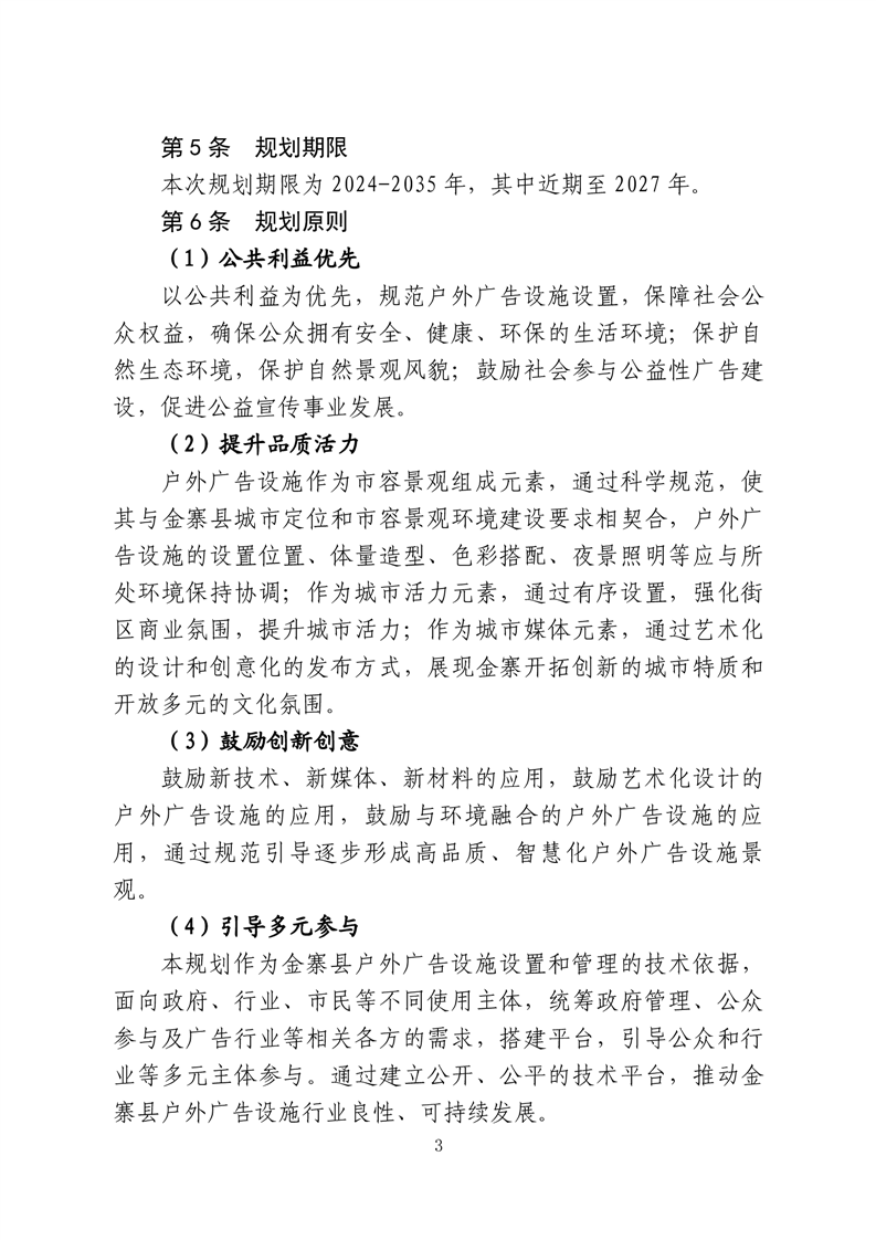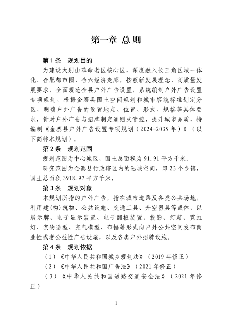 各乡镇人民政府,安徽金寨经济开发区(金寨现代产业园区)管委,安徽金寨技师学院(金寨职业学校),县政府各部门、各直属单位: 经2025年2月21日县自然资源规划(林长制及绿化)委员会办公室工作会议研究同意,现将《金寨县户外广告设置专项规划(2024-2035 年)》印发给你们,请结合实际,认真贯彻执行。 2025年3月17日