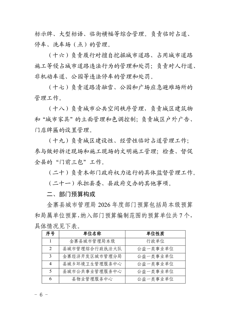 金寨县城市管理局2026年部门单位预算公开(包含下属事业单位)