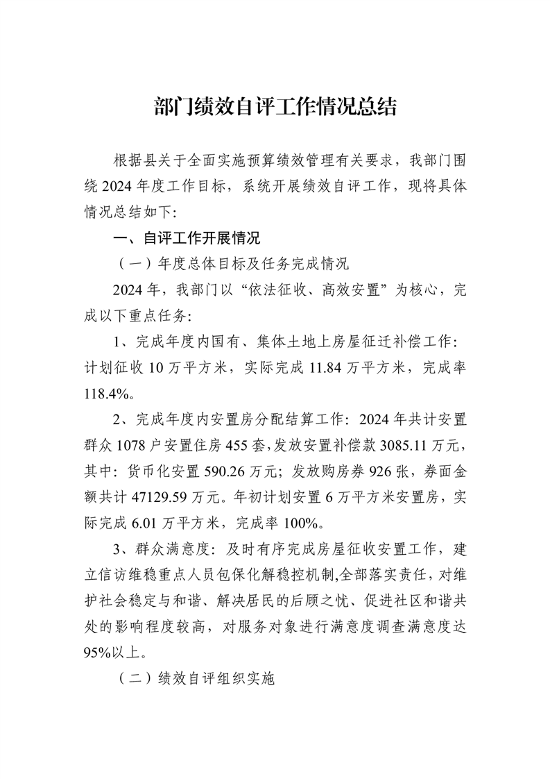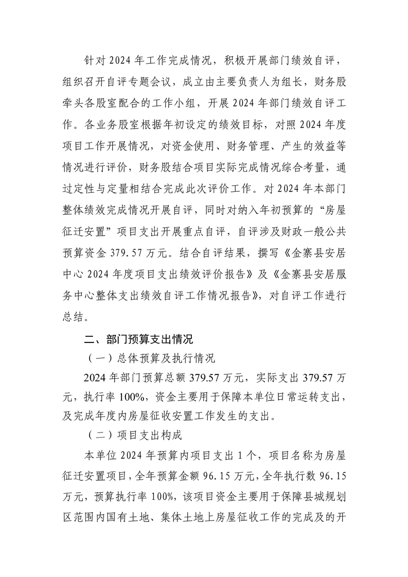 2024年金寨县安居服务中心部门绩效自评工作情况总结