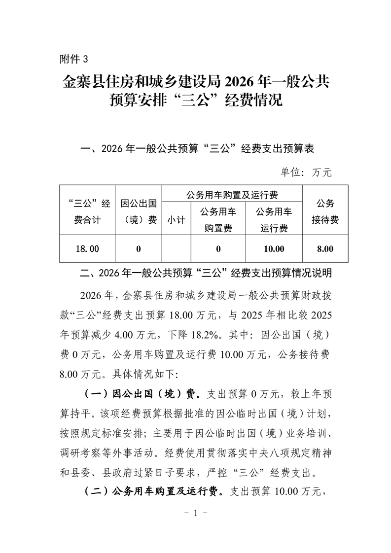 金寨县住房和城乡建设局2026年一般公共预算安排“三公”经费情况