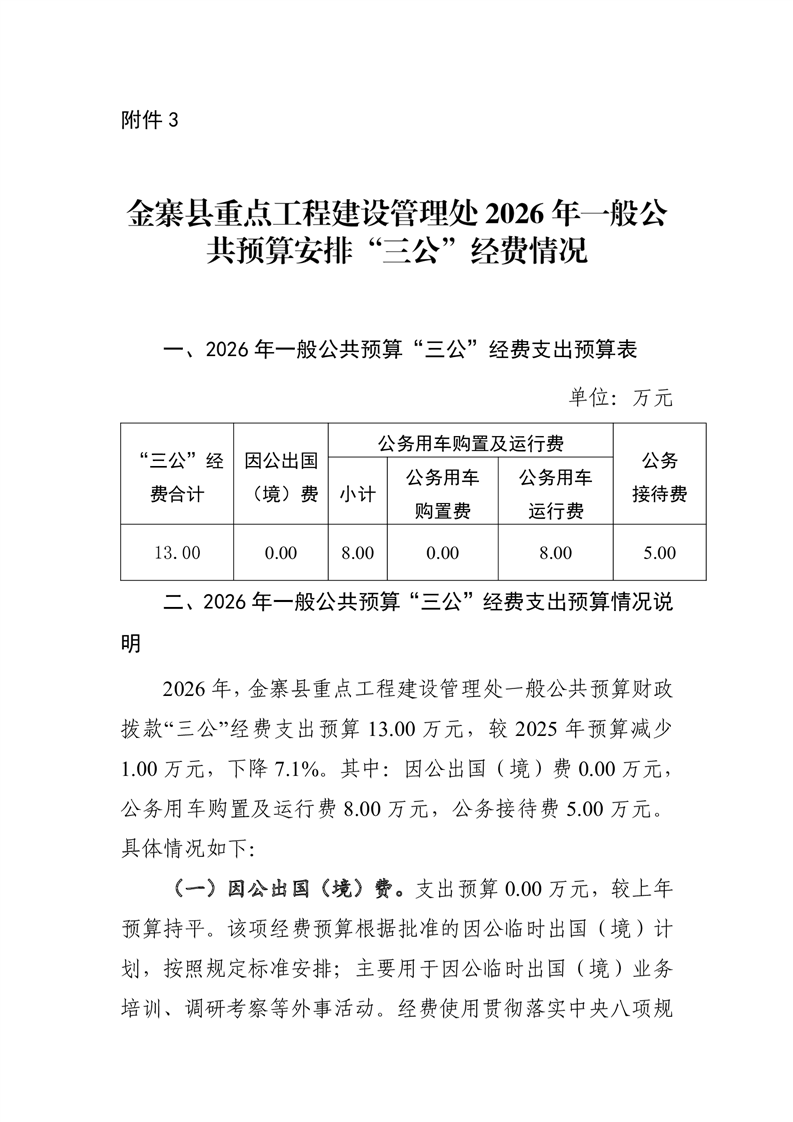 金寨县重点工程建设管理处2025年度一般公共预算财政拨款“三公”经费预算