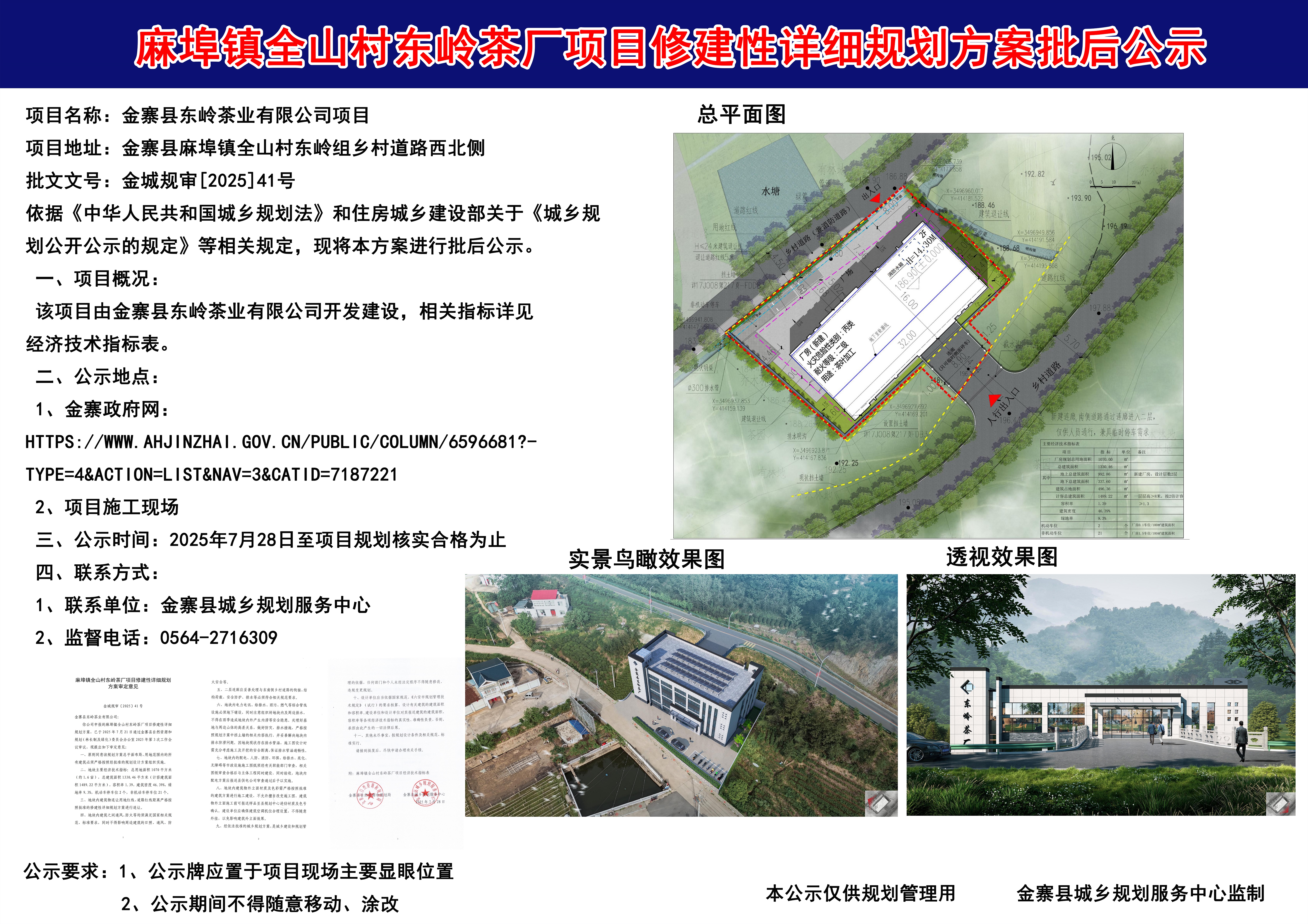 麻埠镇全山村东岭茶厂项目修建性详细规划方案批后公示