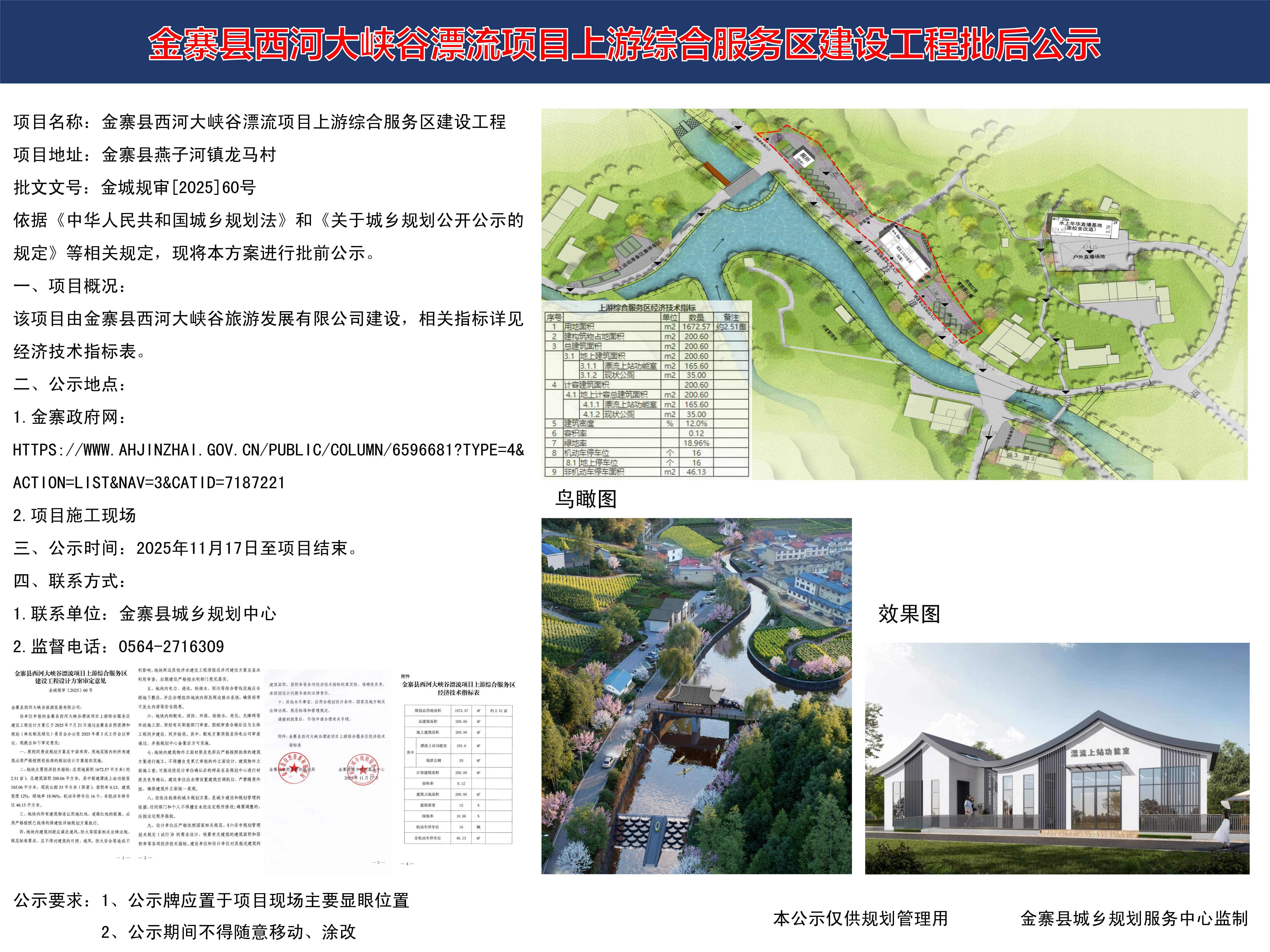 金寨县西河大峡谷漂流项目上游综合服务区建设工程批后公示