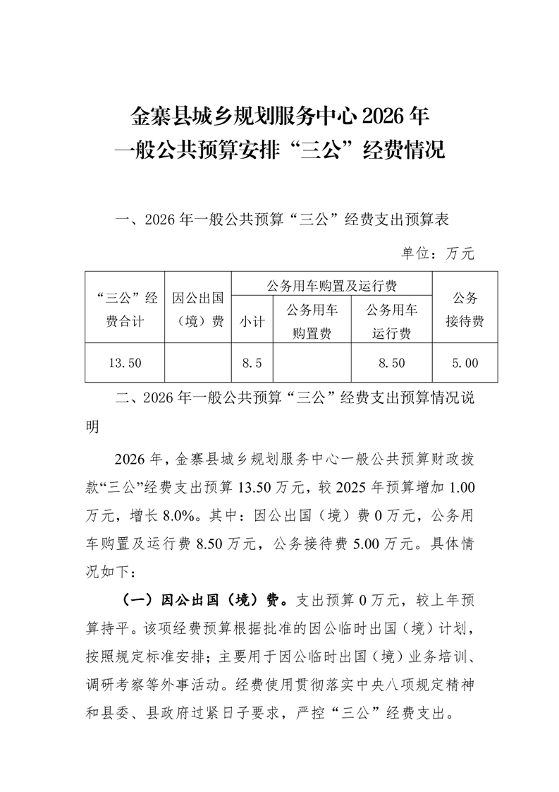 金寨县城乡规划服务中心2026年一般公共预算安排“三公”经费情况