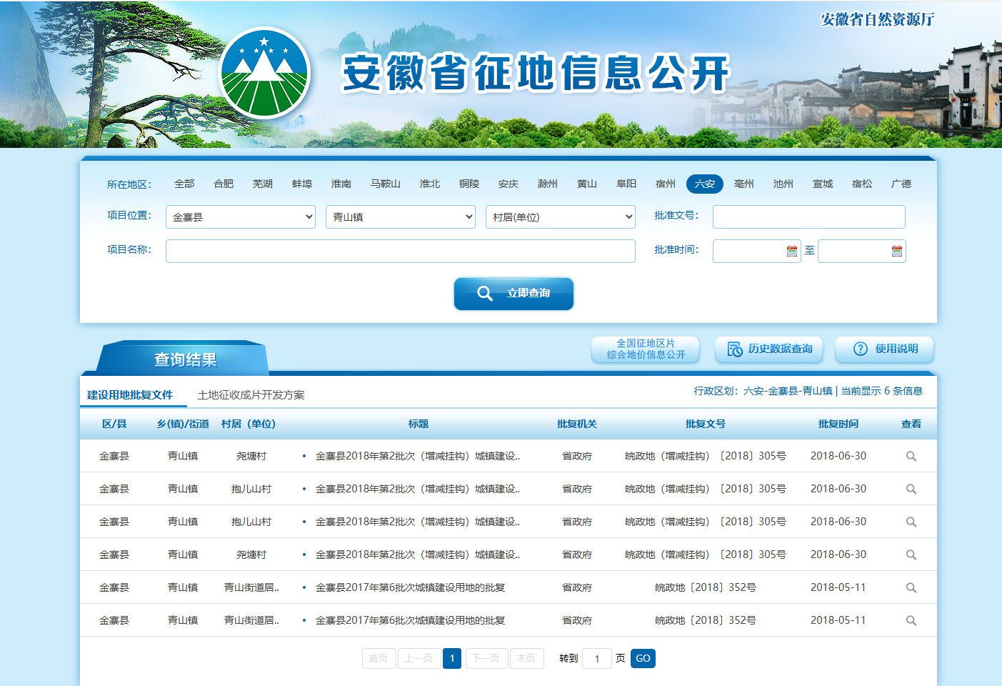 青山镇2018年以来未进行土地征收,目前新建项目未征收土地,下图为安徽省征地信息公开平台截图。