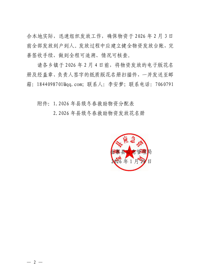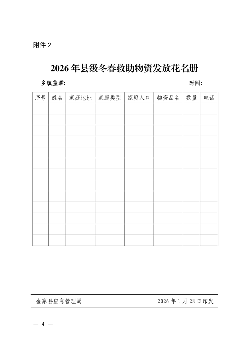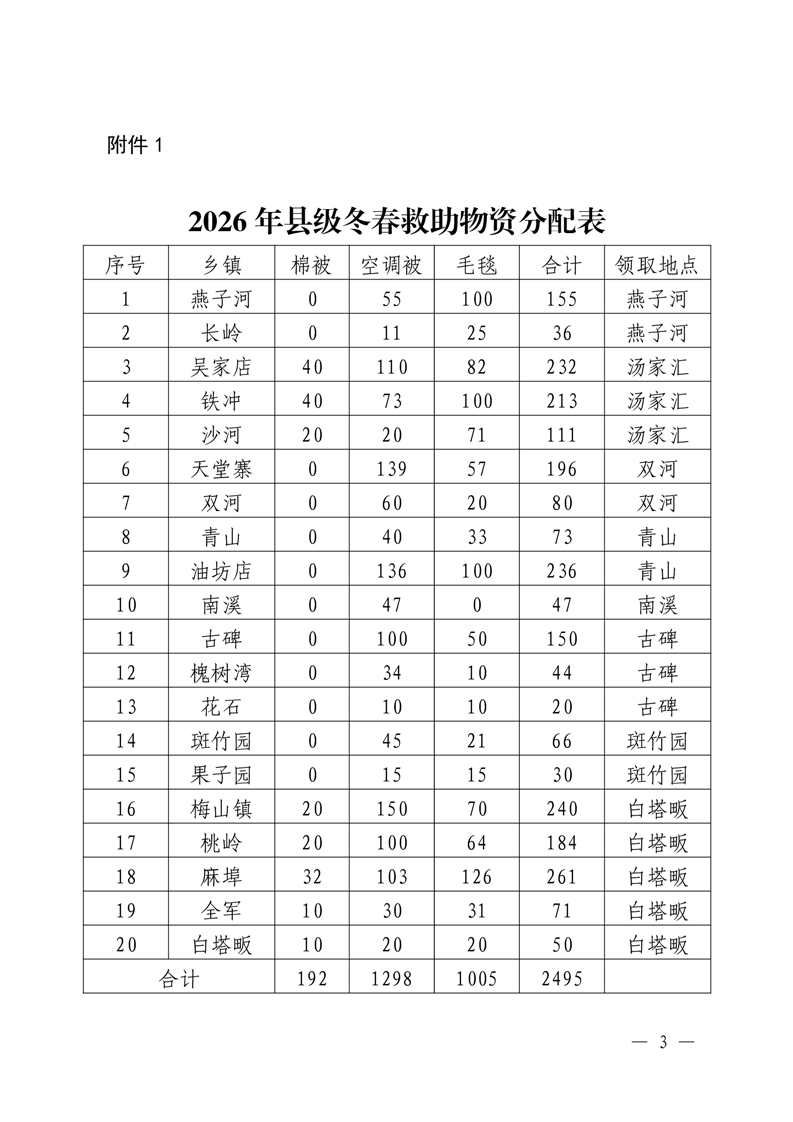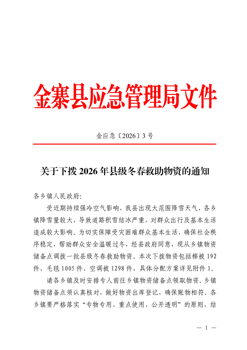 关于下拨2026年县级冬春救助物资的通知(含青山镇)
