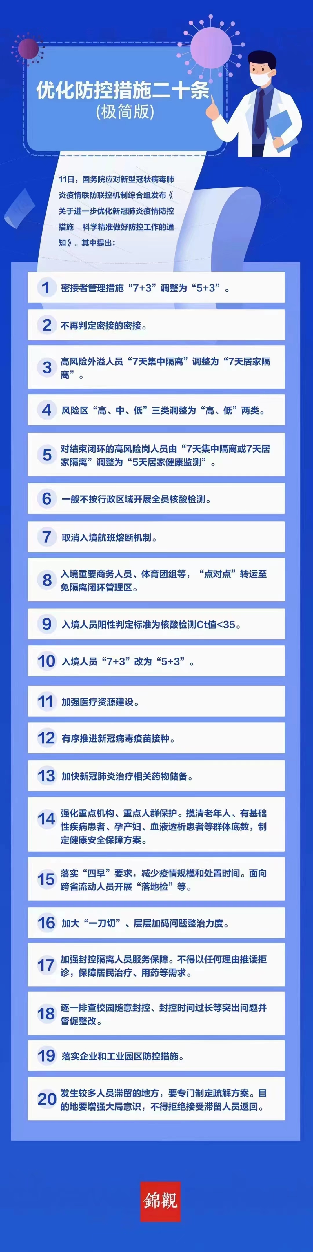 国务院联防联控机制公布进一步优化防控工作的二十条措施,为让辖区居民及时了解,梅山镇转发如下: