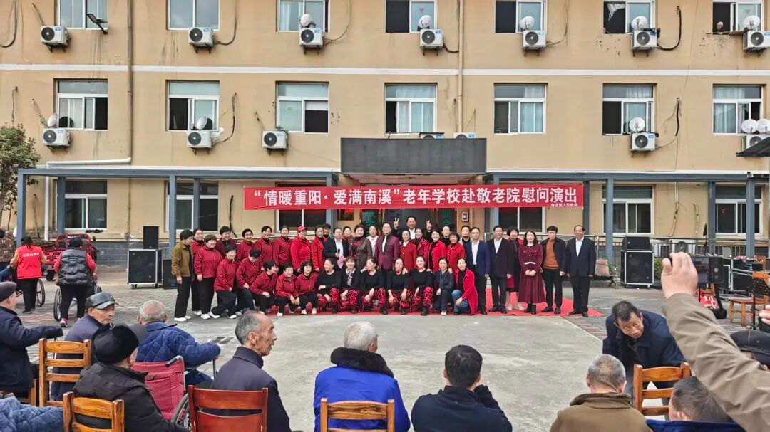 金菊吐蕊,丹桂沁香。重阳佳节将至,为弘扬中华民族“敬老、爱老、助老”的传统美德,丰富老年朋友的精神文化生活,10月29日,南溪镇老年大学以“情暖重阳·关爱相伴”为主题,组织学员走进养老院,用自编自导的文艺汇演,为长者们送去了节日的暖意与欢笑。