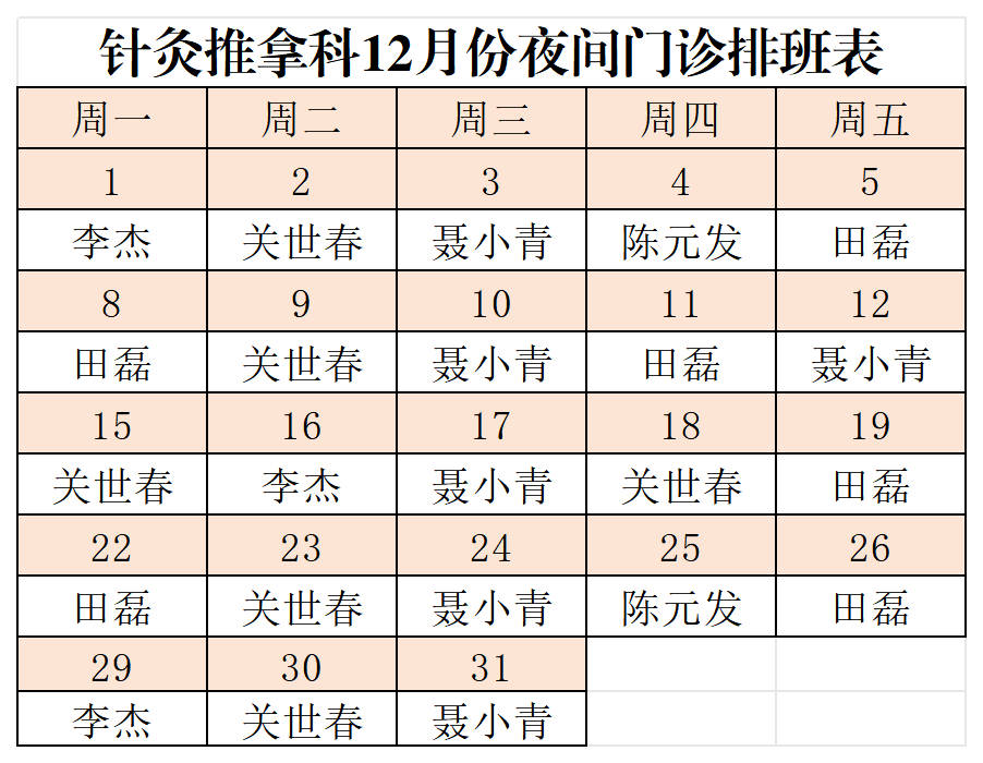 坐诊时间:2025年12月1日起每周一下午