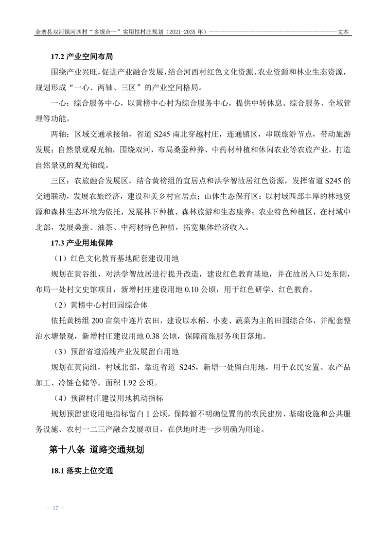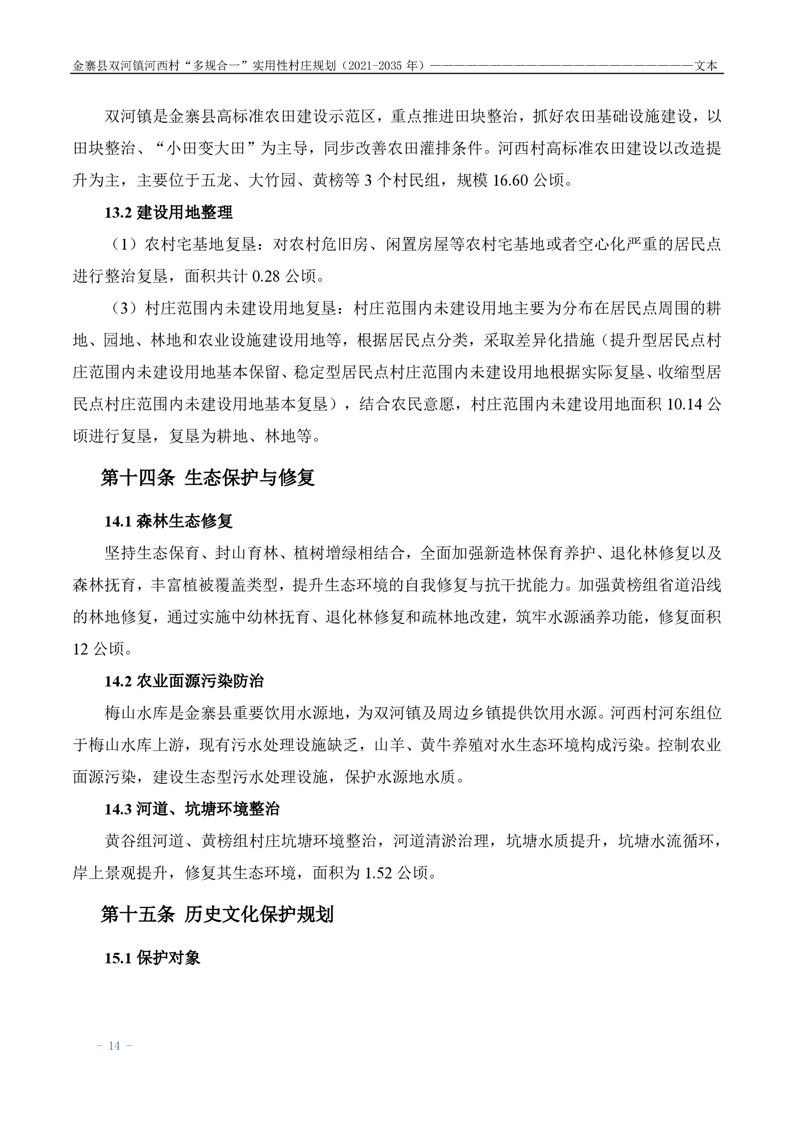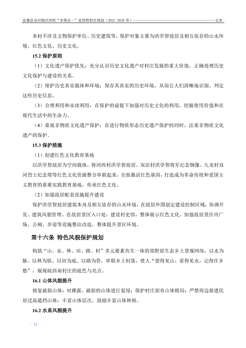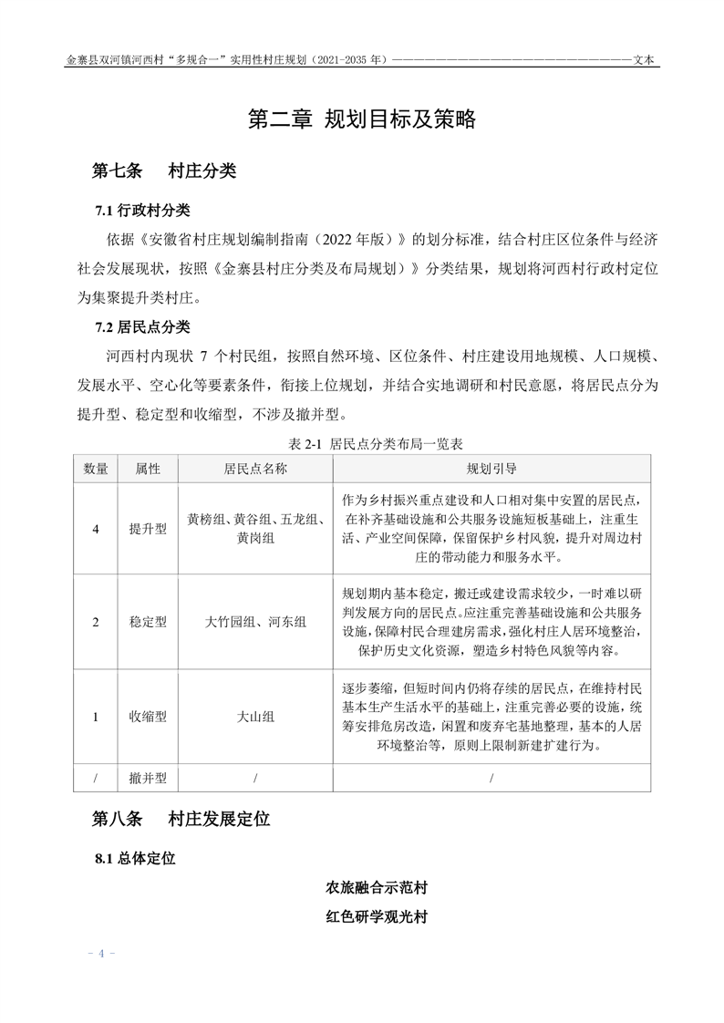 【批前公示】金寨县双河镇河西村“多规合一”实用性村庄规划(2021-2035 年)