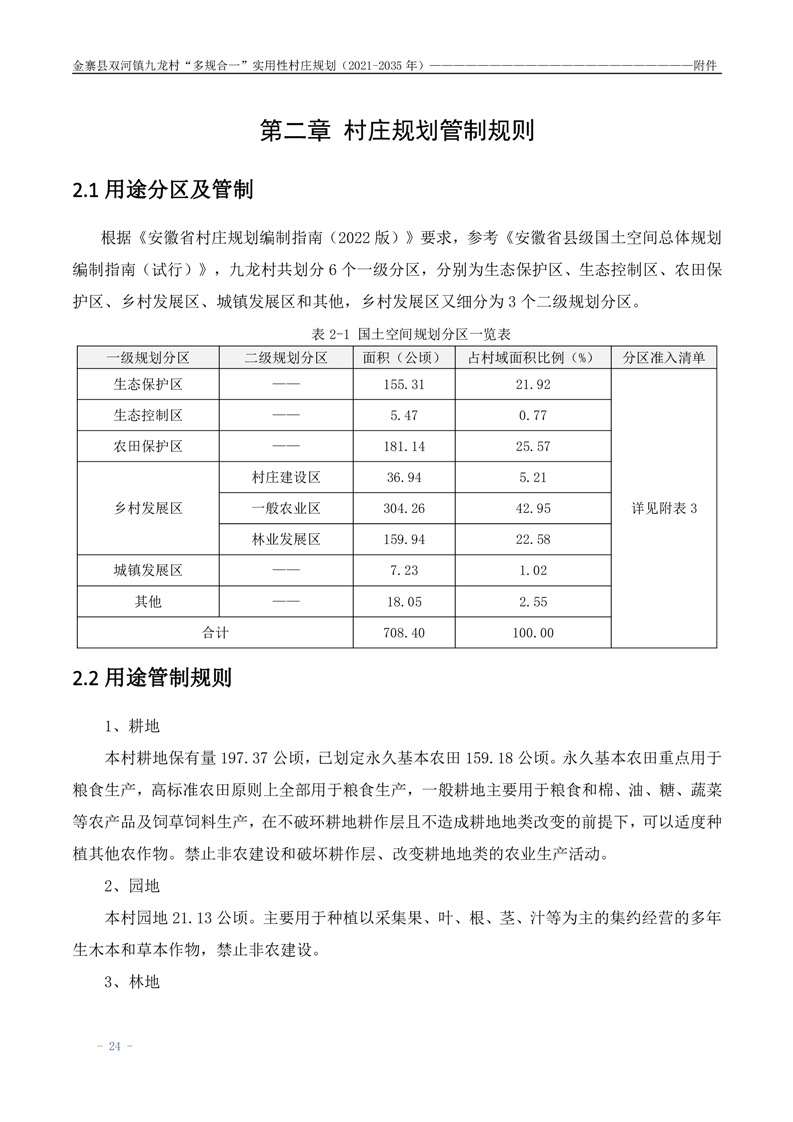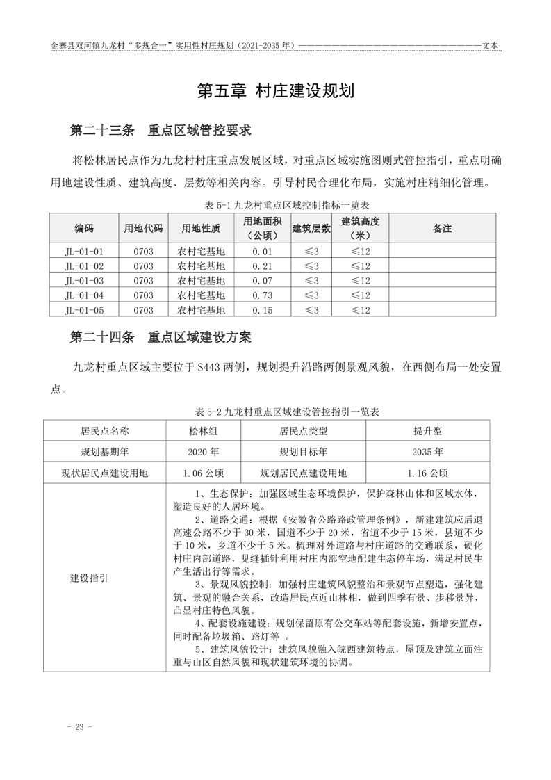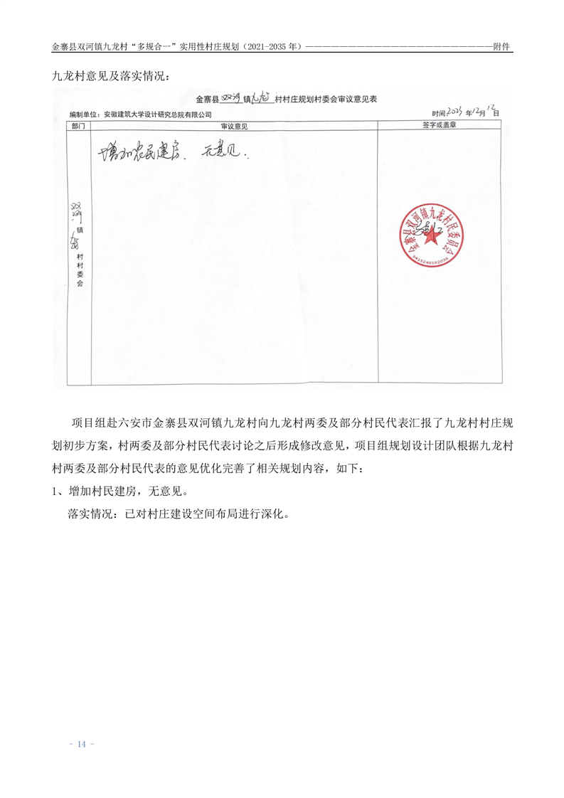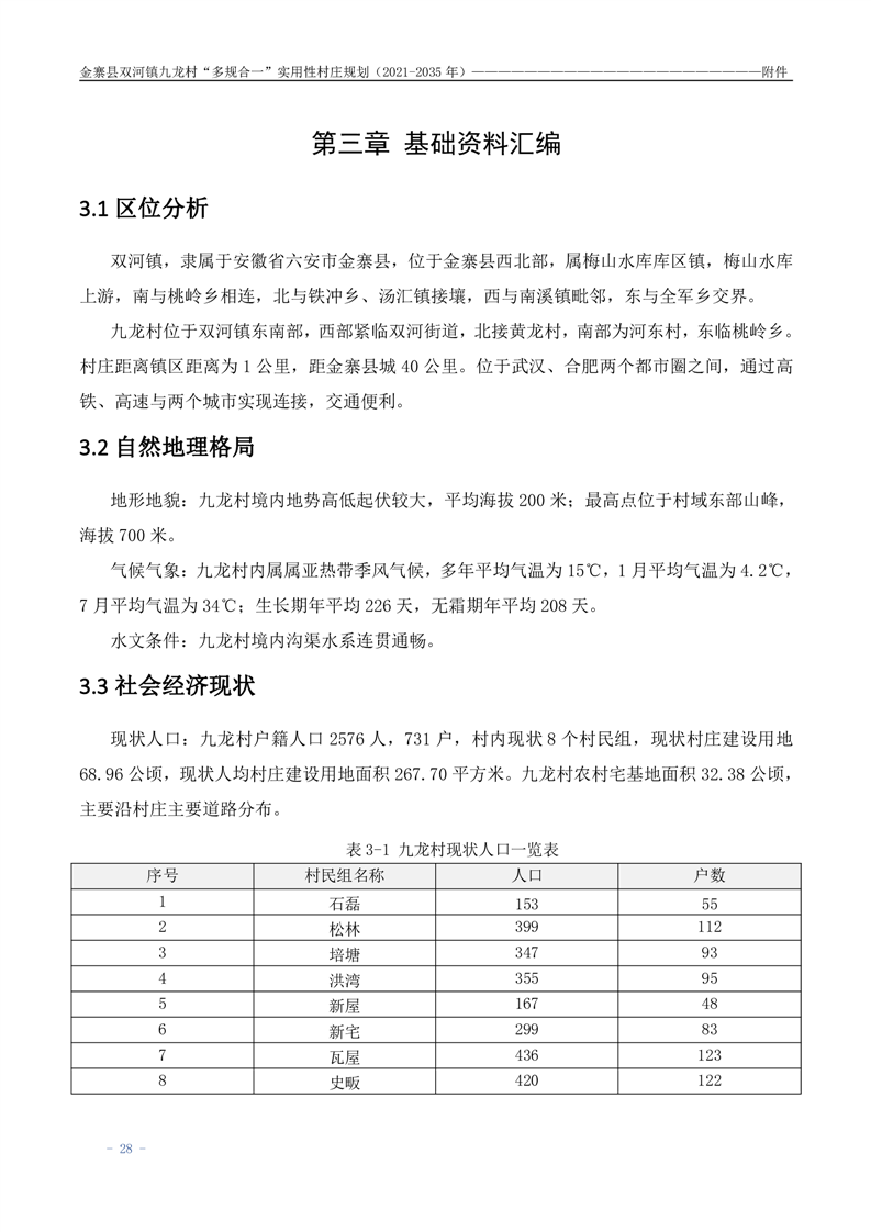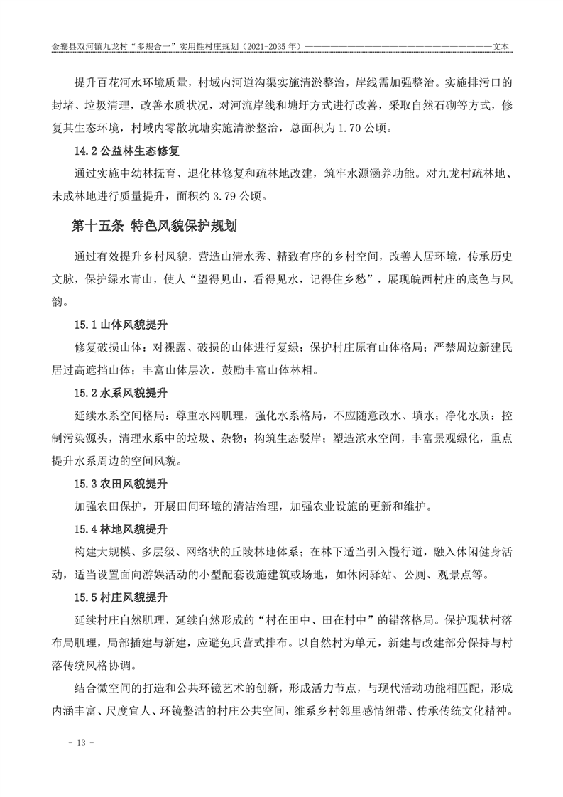 【批前公示】金寨县双河镇九龙村“多规合一”实用性村庄规划(2021-2035 年)