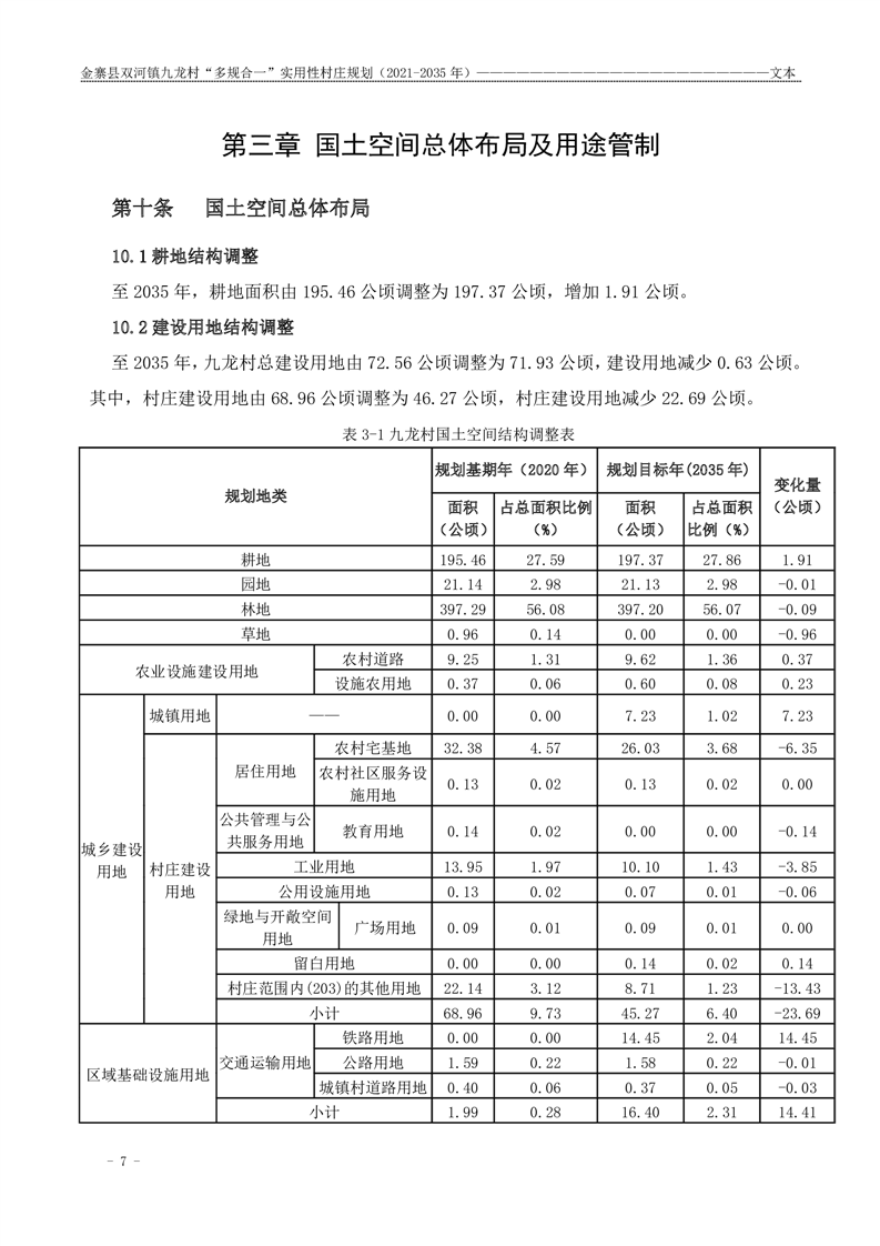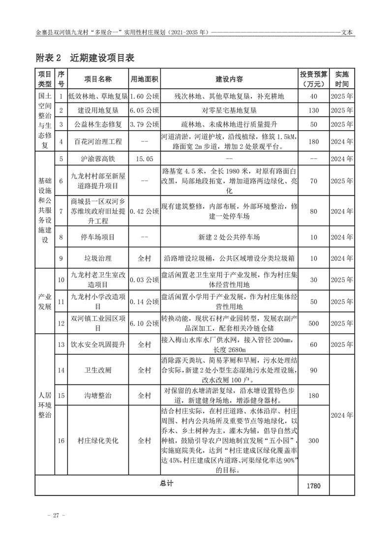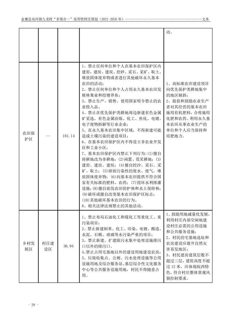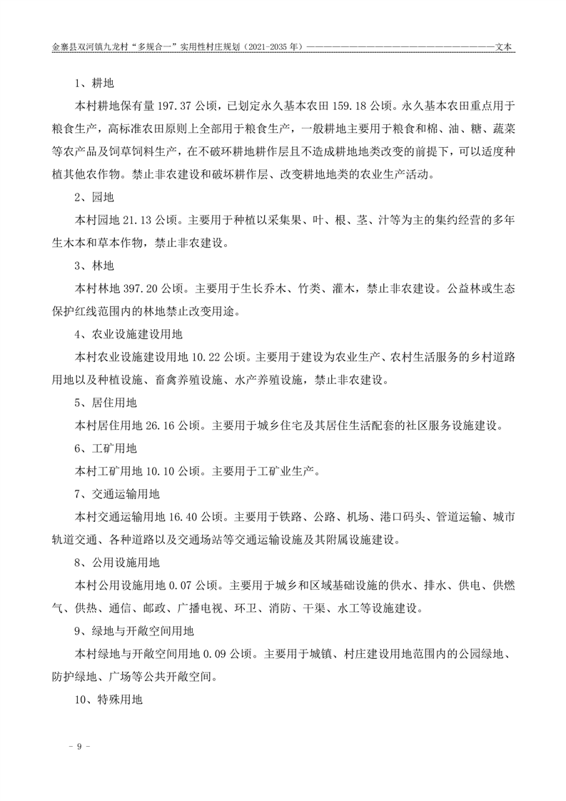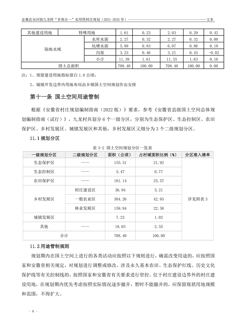 【批前公示】金寨县双河镇九龙村“多规合一”实用性村庄规划(2021-2035 年)