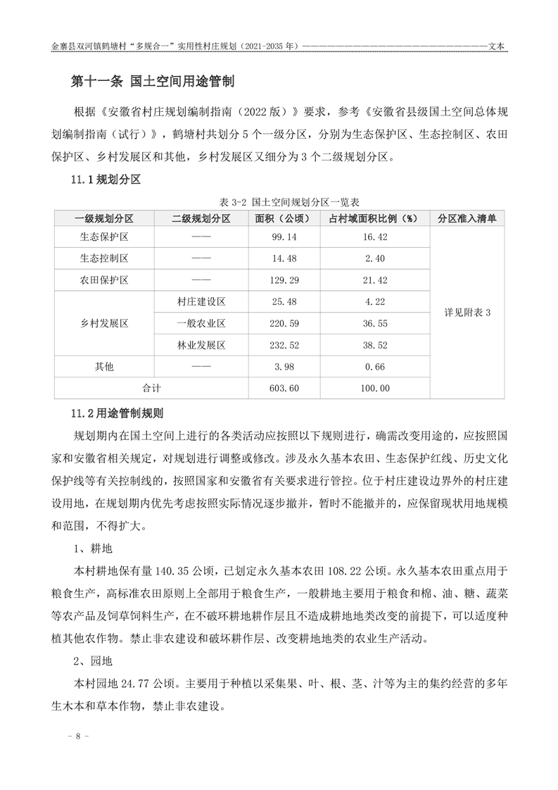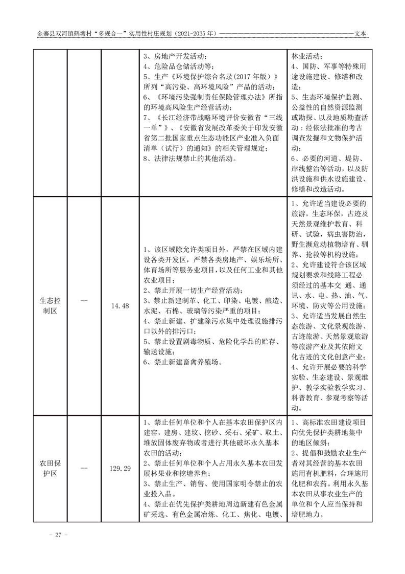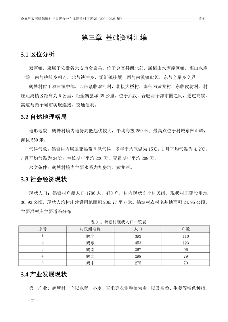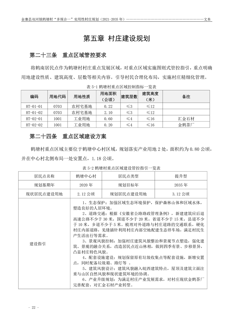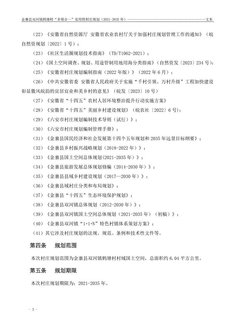 【批前公示】金寨县双河镇鹤塘村“多规合一”实用性村庄规划(2021-2035 年)