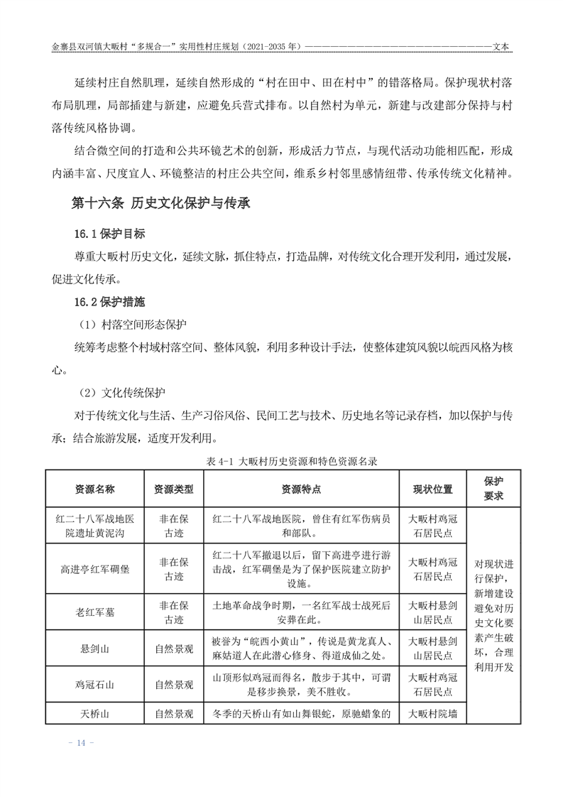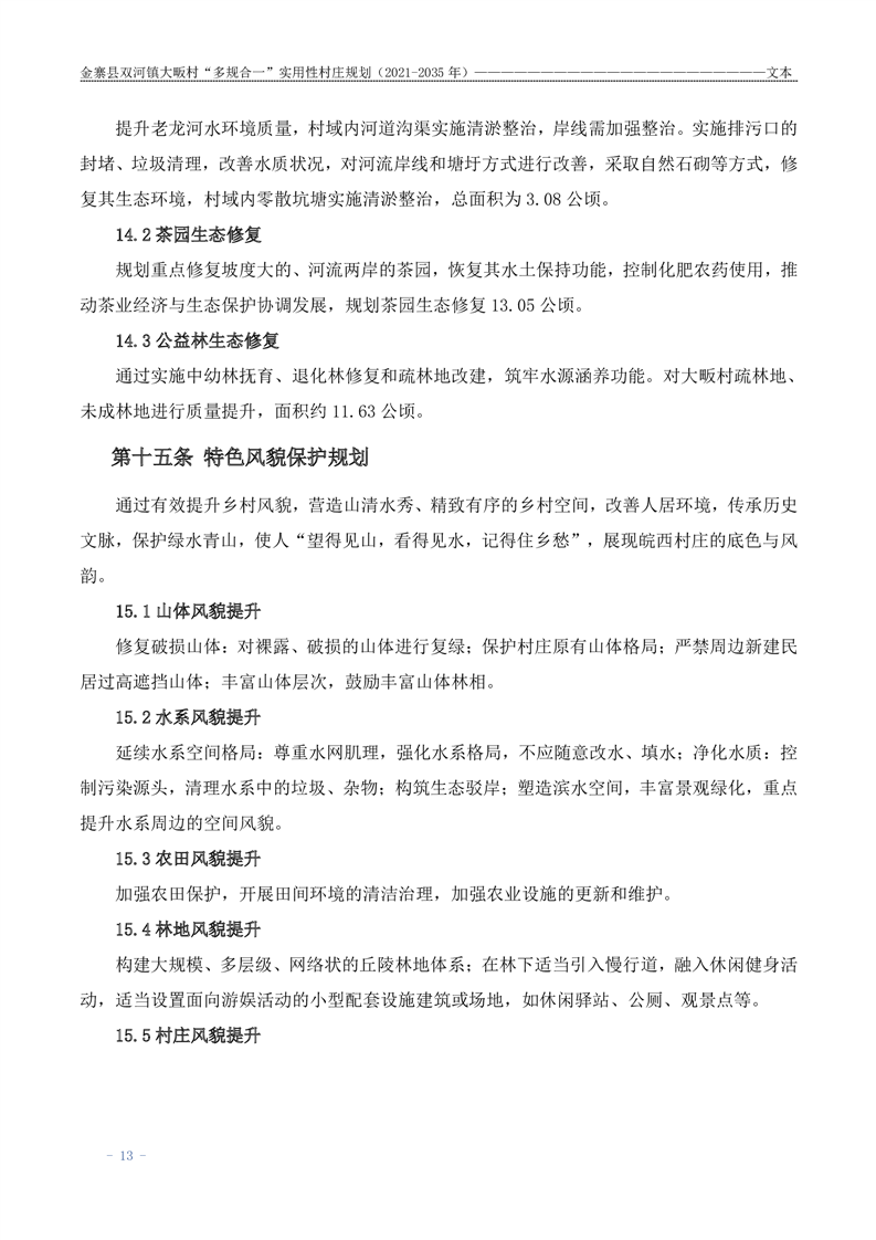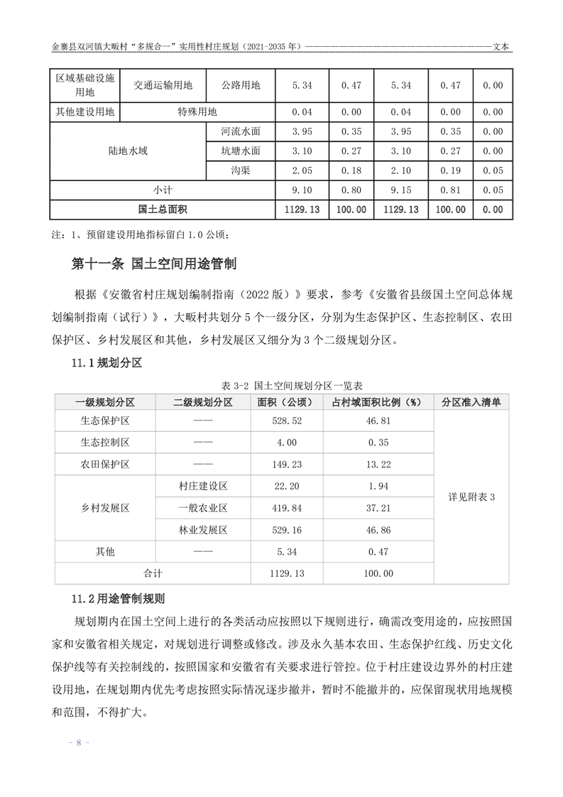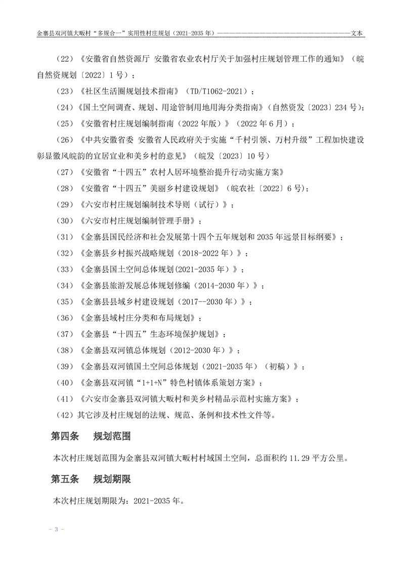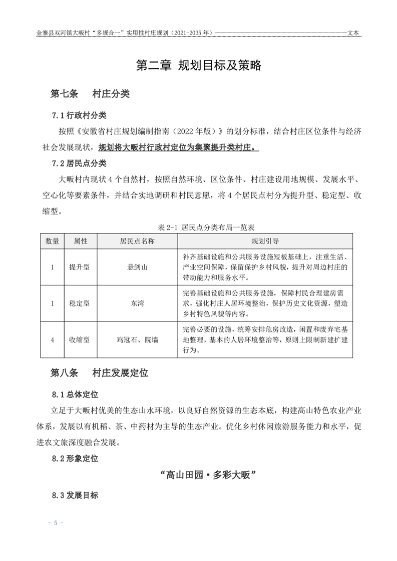 【批前公示】金寨县双河镇大畈村“多规合一”实用性村庄规划(2021-2035 年)