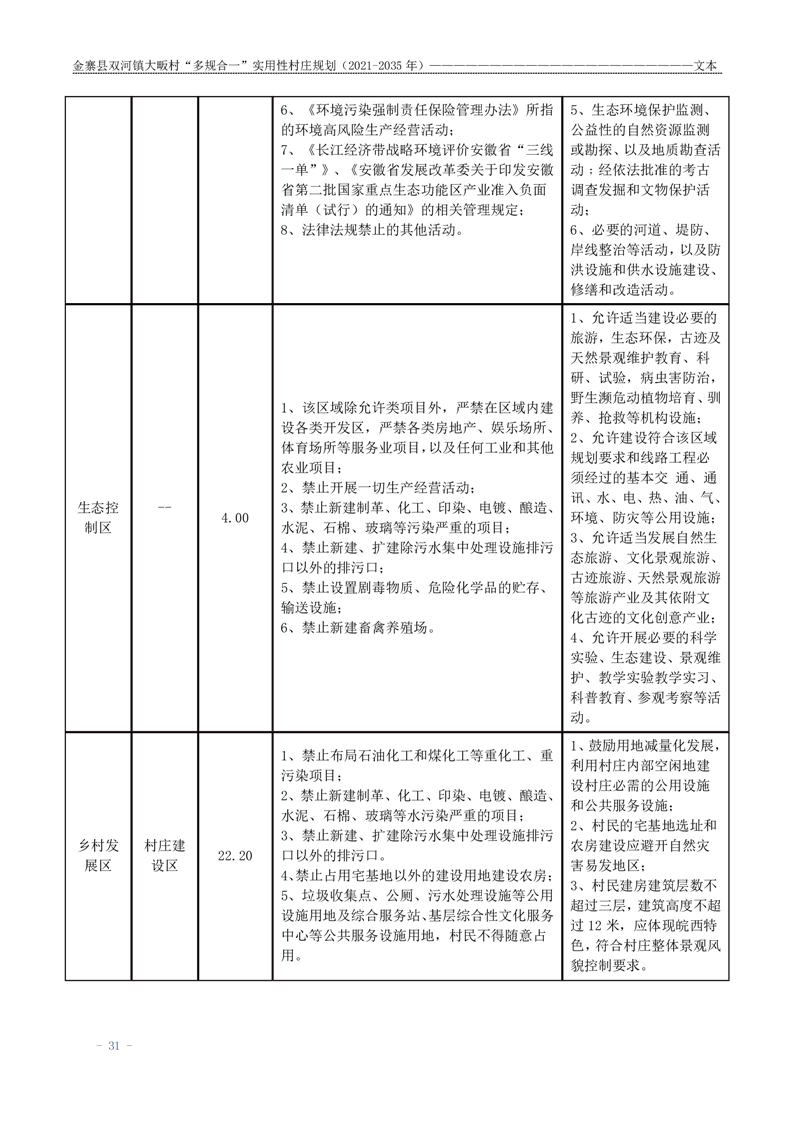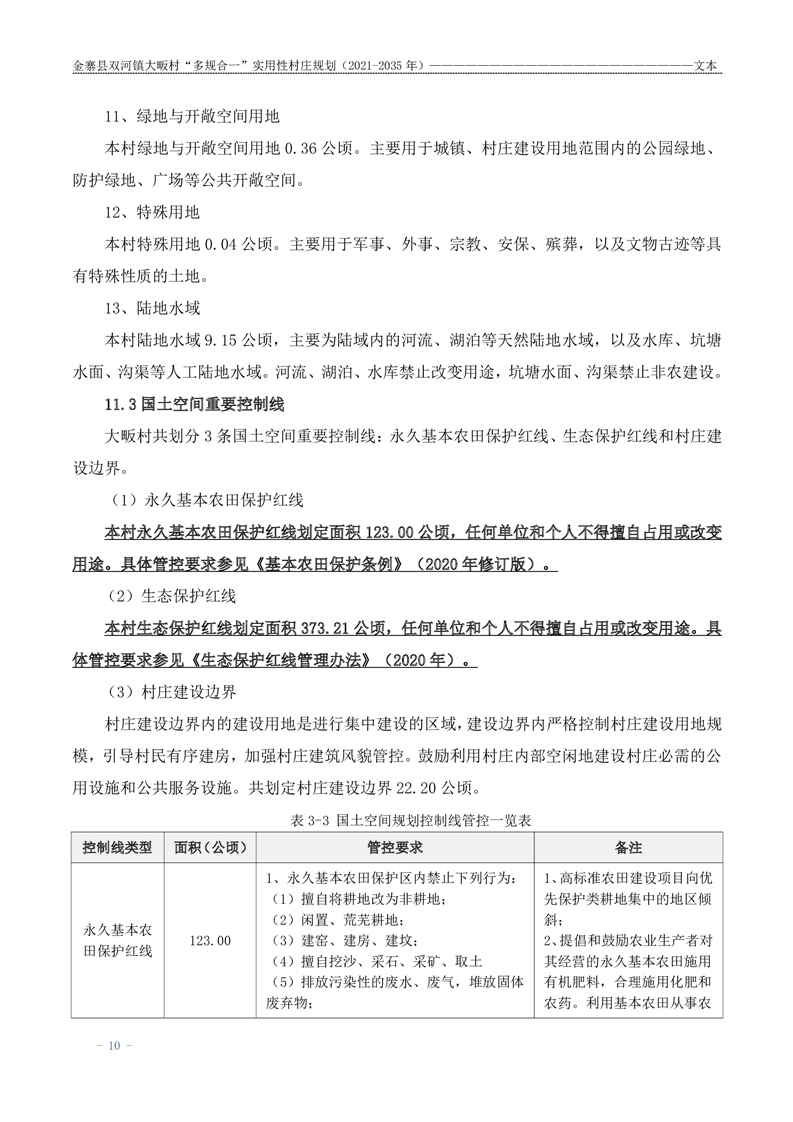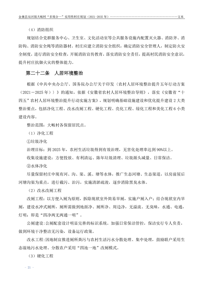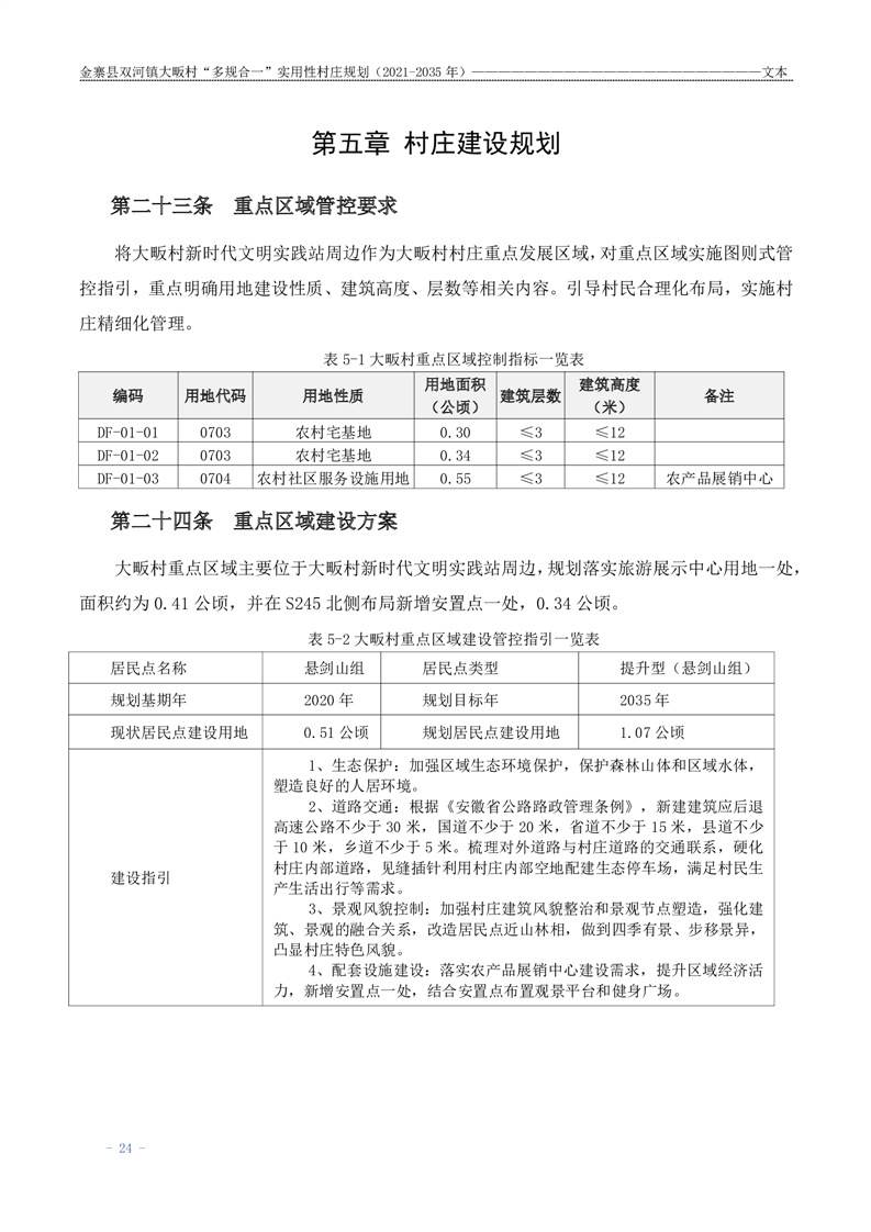 【批前公示】金寨县双河镇大畈村“多规合一”实用性村庄规划(2021-2035 年)