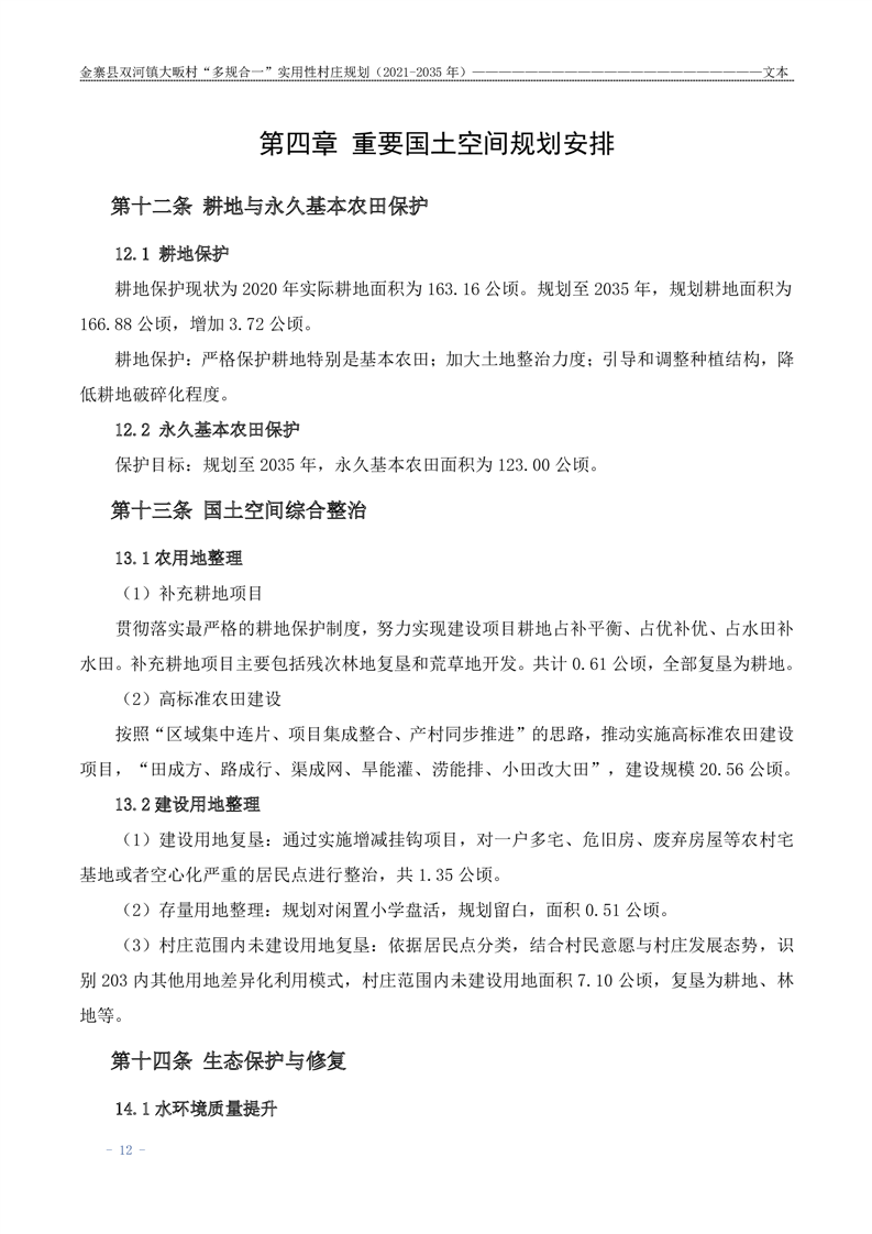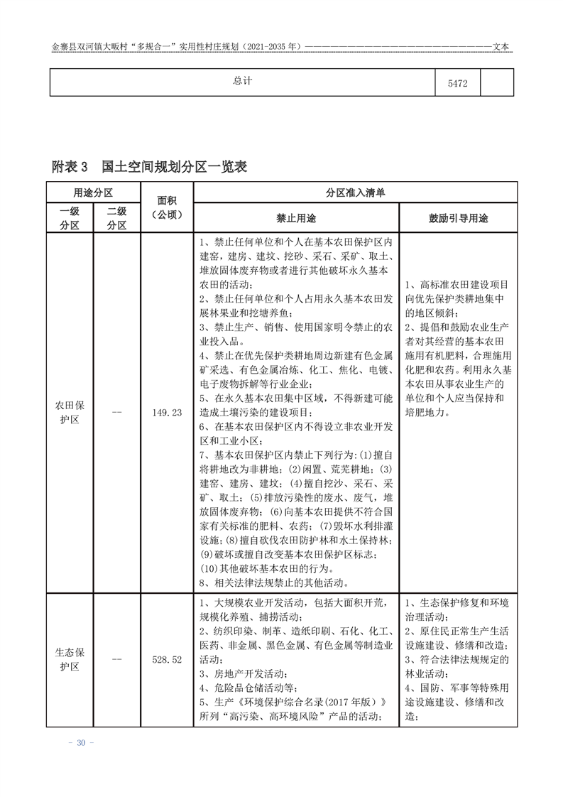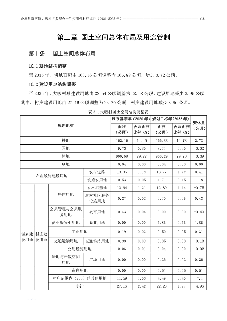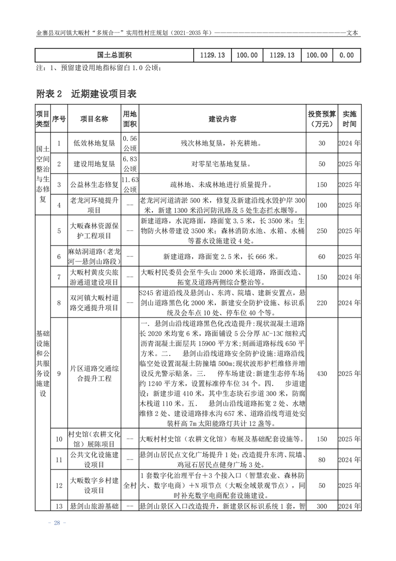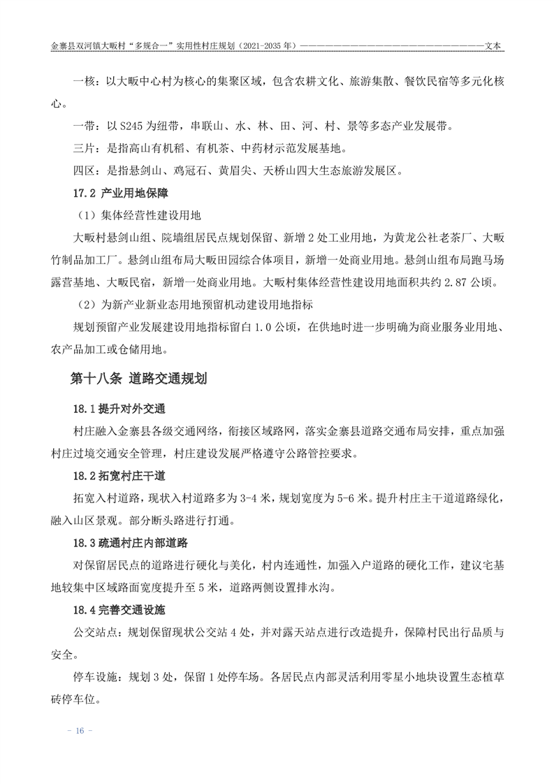 【批前公示】金寨县双河镇大畈村“多规合一”实用性村庄规划(2021-2035 年)